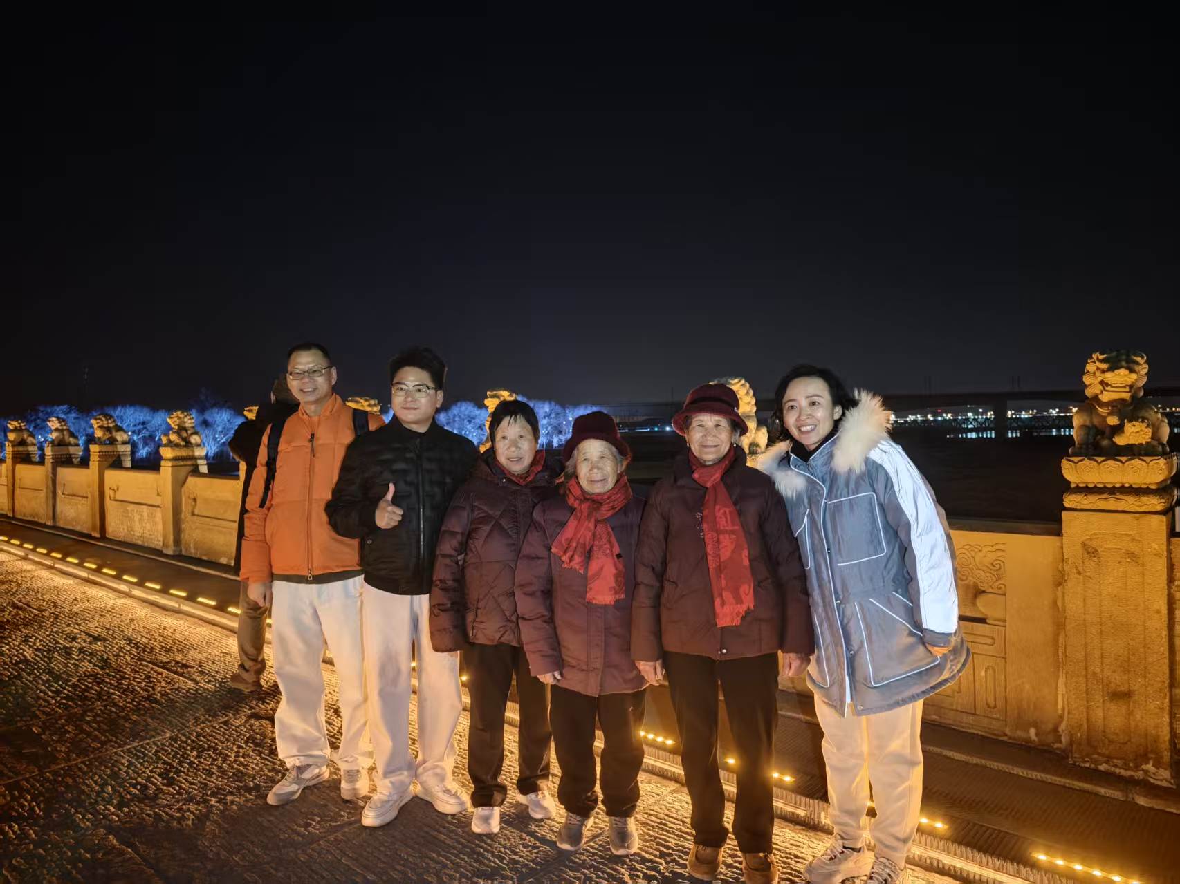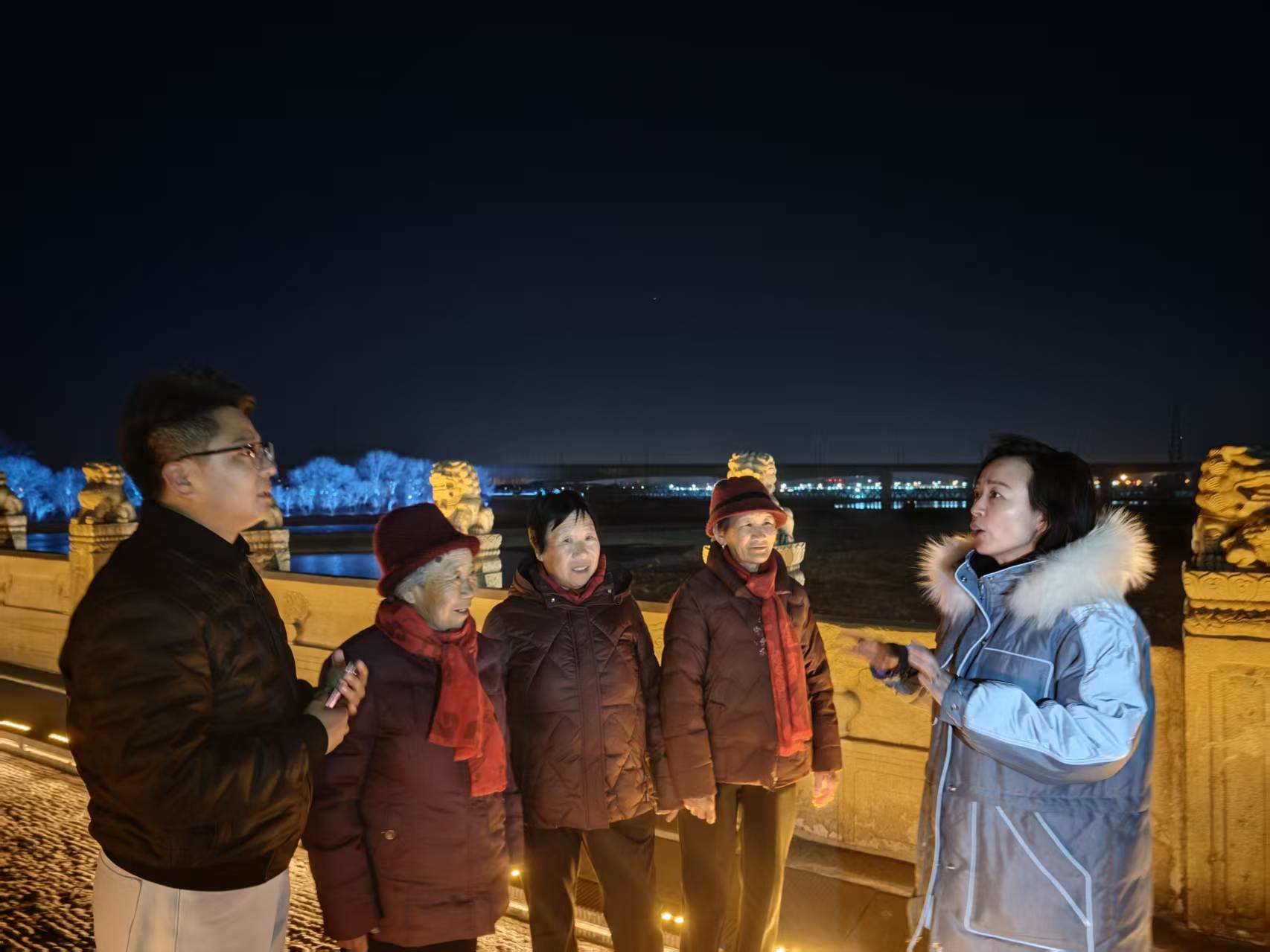 郁章宝带着老人来到卢沟桥上,近距离感受这座古桥的夜色与韵味。