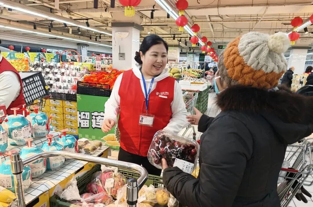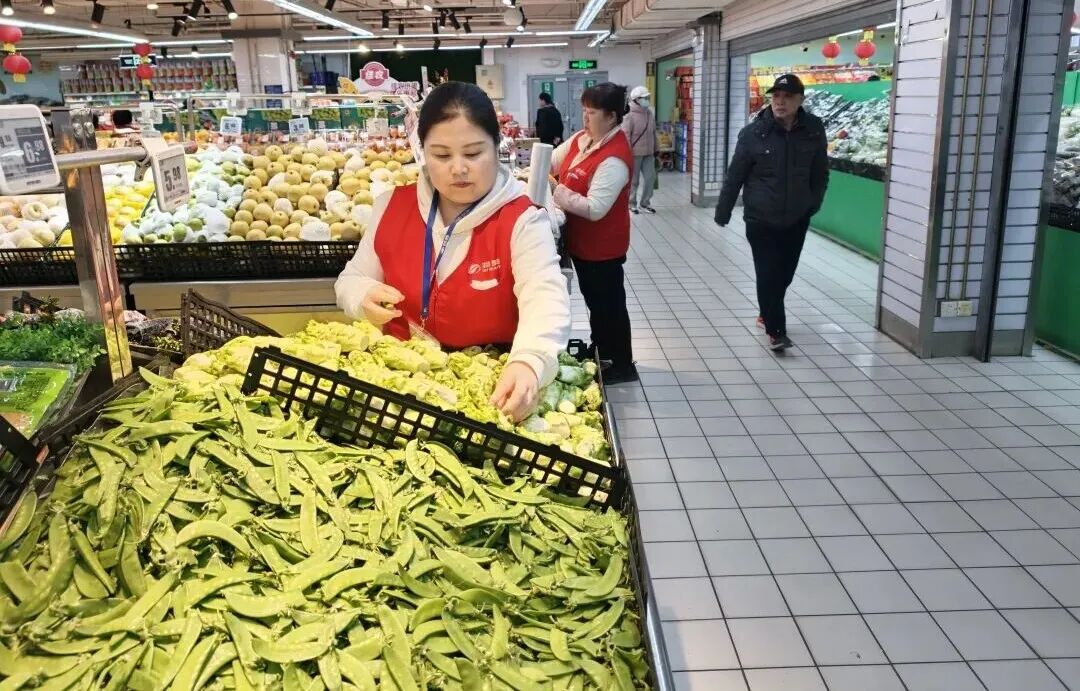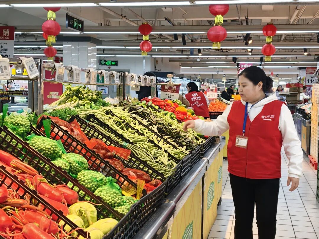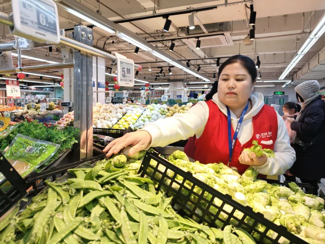 从1953年的露天市场起步,到成为当年京城四大菜市场之一,再到历经岁月洗礼,朝内菜市场不仅见证了时代的沧桑变迁,更始终扎根市井、温暖相伴,默默守护着周边百姓的烟火日常。这份跨越岁月的温暖,离不开每一位值守人员的无私付出。春节期间,王洪艳与蔬果区的17名员工全员在岗值守,用责任与担当筑牢春节果蔬供应的便民服务线。
