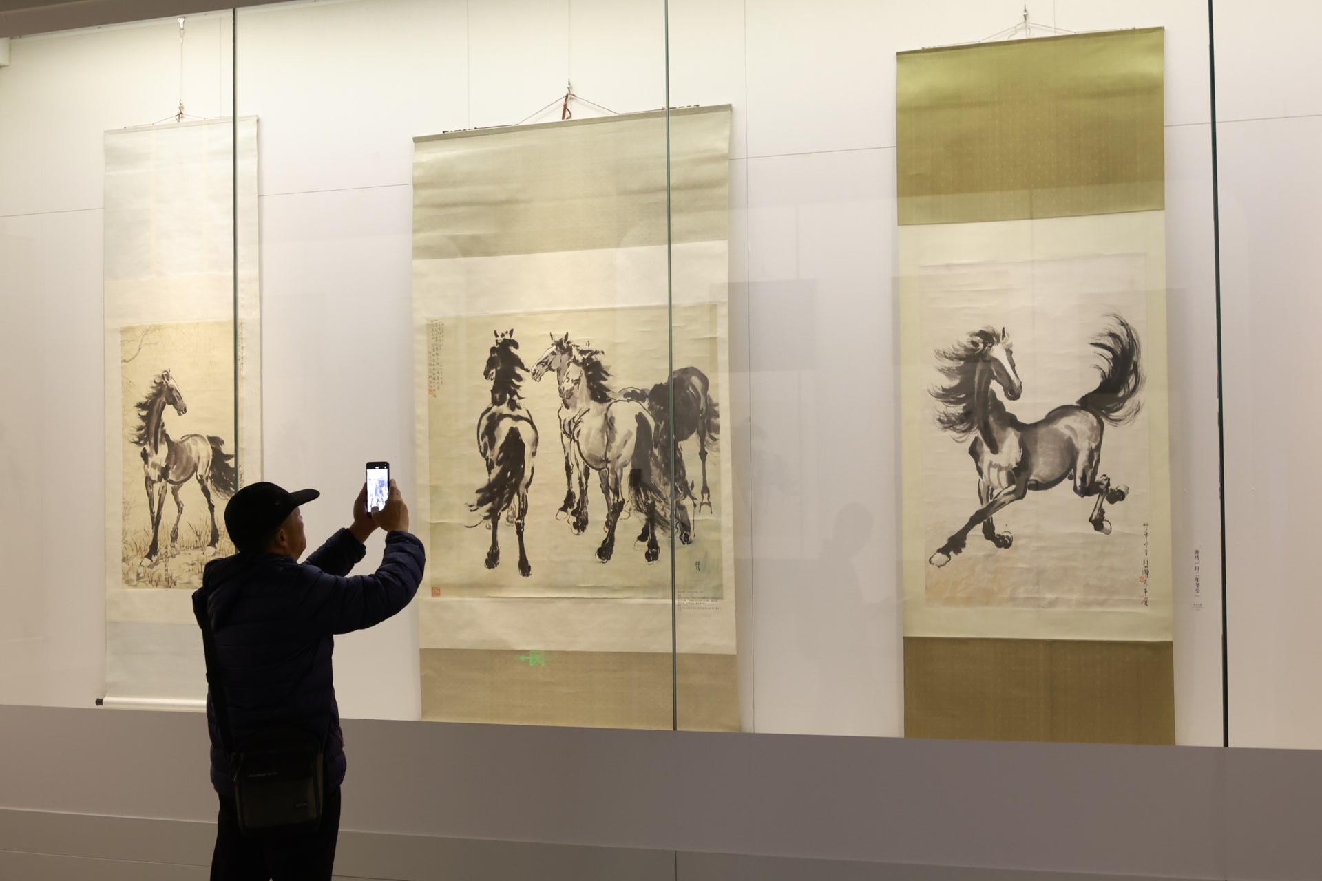 从《奔马》到《立马》,再到《饮马》《回头马》,一幅幅经典画作中,一匹匹骏马或奋蹄疾驰或俯首蓄力,吸引观众驻足。不少人靠近展柜仔细研究画作上的笔触,用手机放大拍下“骨力雄健”的线条。“我属马,特意在春节假期赶来‘寻马’。”来自浙江的吴先生是专程来看马主题展,他说,“我很喜欢徐悲鸿先生画的马,一次欣赏到这么多不同形态的骏马图,真是大饱眼福。”
