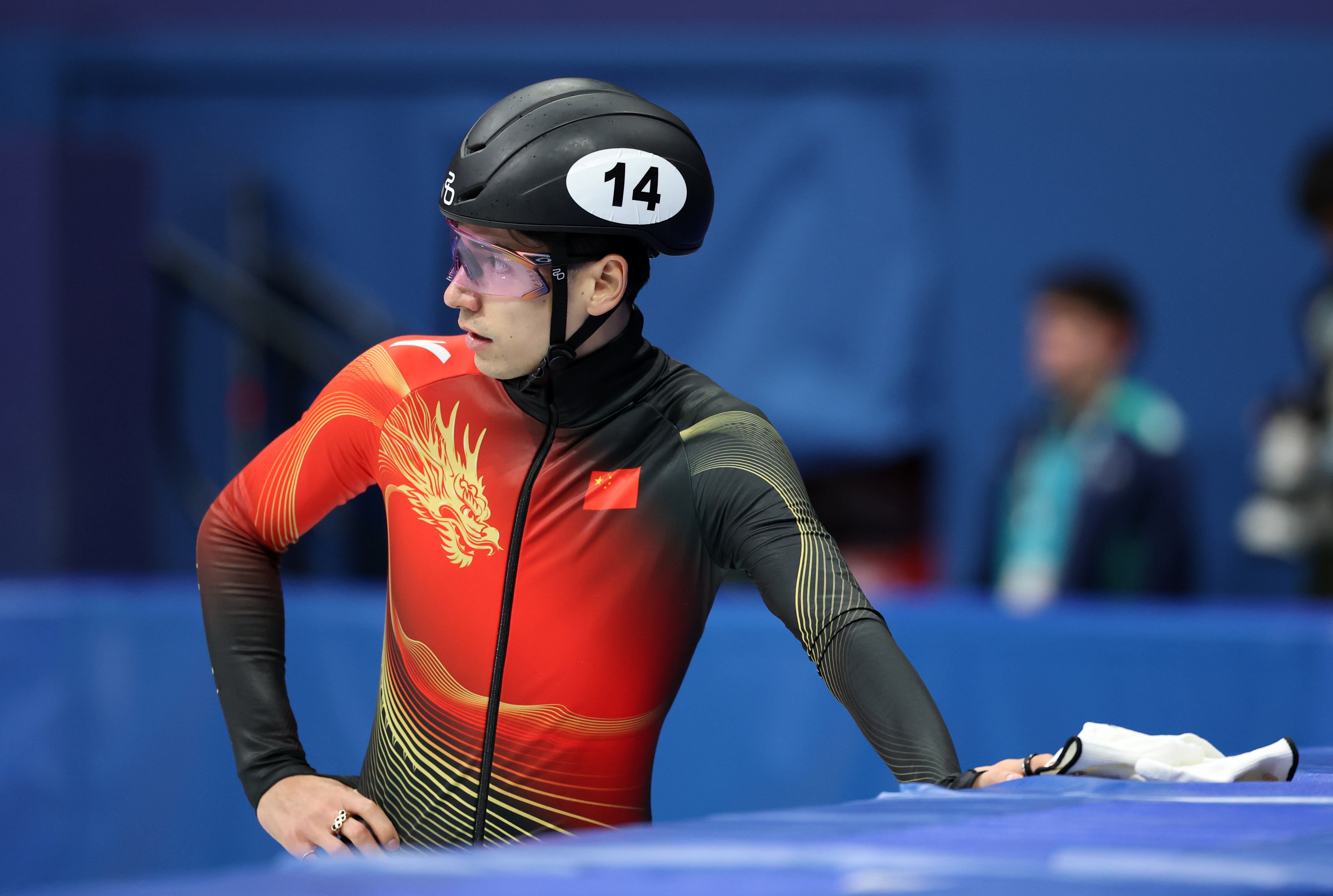 两天后,滑完自己的1000米B组决赛,他没有离场,而是一直站在场边为进入A组决赛的孙龙加油。