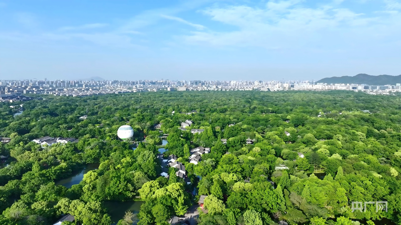 俯瞰杭州,绿色描绘出城市高质量发展的生动图景(央广网记者 尚天宇 摄)