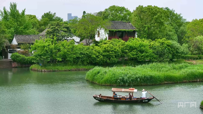 杭州西溪国家湿地公园水道纵横,游客乘船如在画中游(央广网记者 尚天宇 摄)