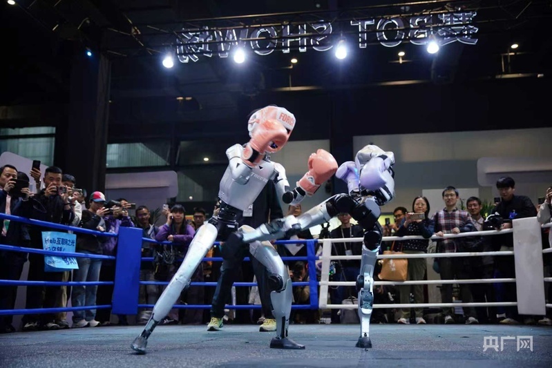 2025“互联网之光”博览会期间,机器人格斗赛吸引了众多观众围观拍照(央广网记者 尚天宇 摄)