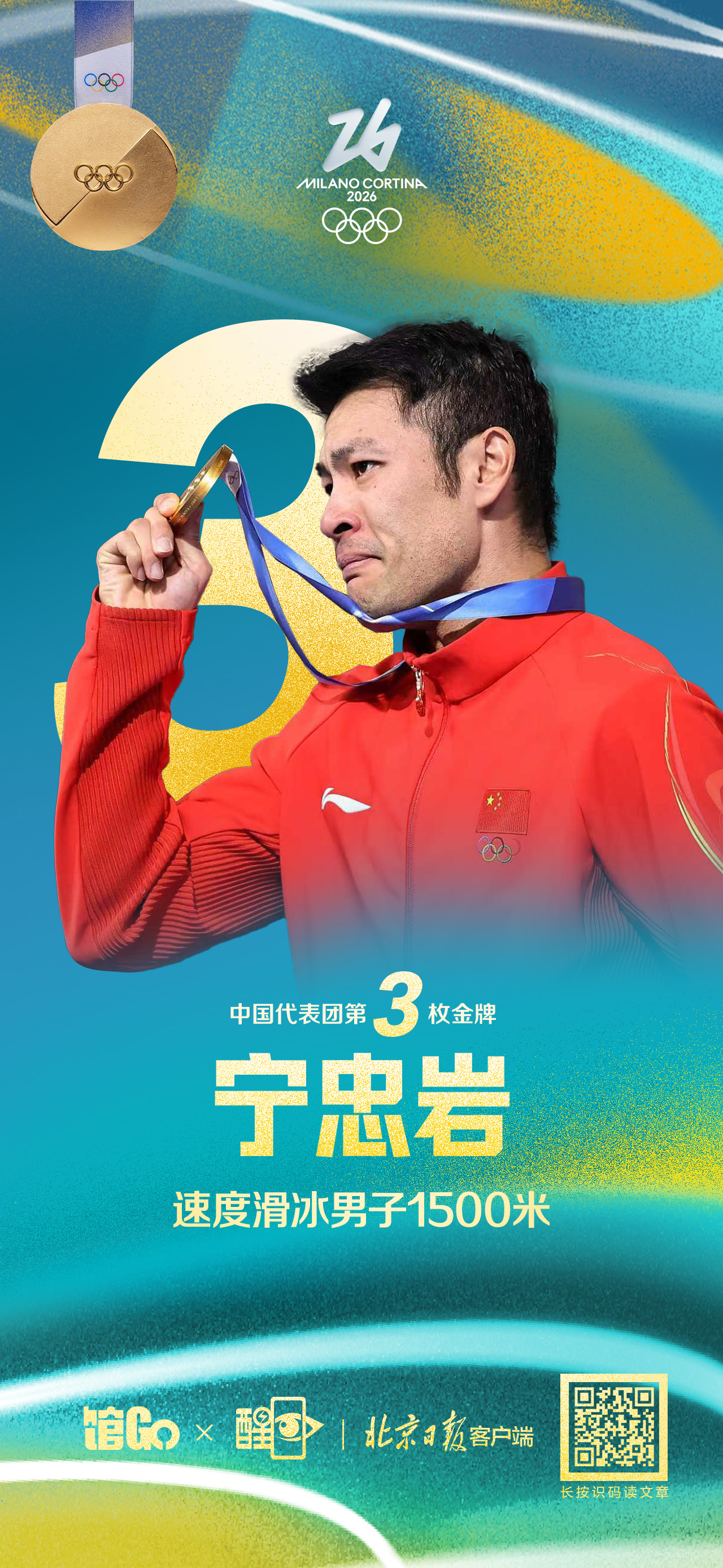海报|破纪录 夺金牌 宁忠岩速滑男子1500米登顶