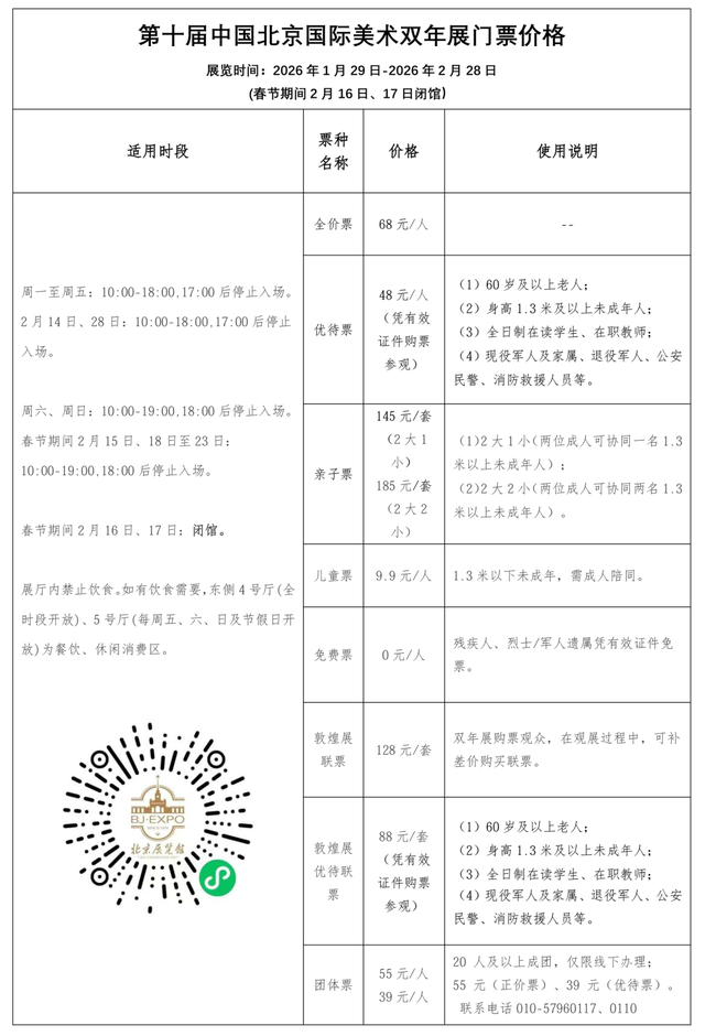 此外,本届双年展还准备了多重新春福利:即日起,观众可通过美团、猫眼平台领取多档位购票优惠券包;凭票根还能在莫斯科餐厅、小莫餐厅、墨多多餐厅、莫斯科餐厅面包房、咖啡迹、俄优品、北展宾馆消费享优惠,在JK FUN商城消费享受银卡福利;即日起至2月23日(大年初二至大年初七)马年本命年的观众凭有效身份证件可免费参观本届双年展。