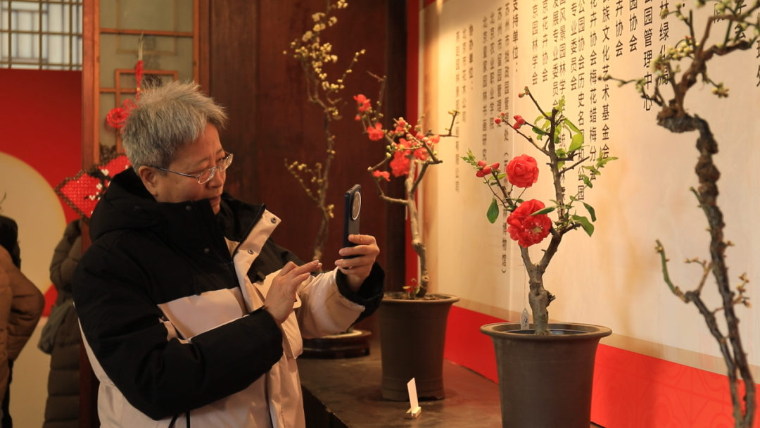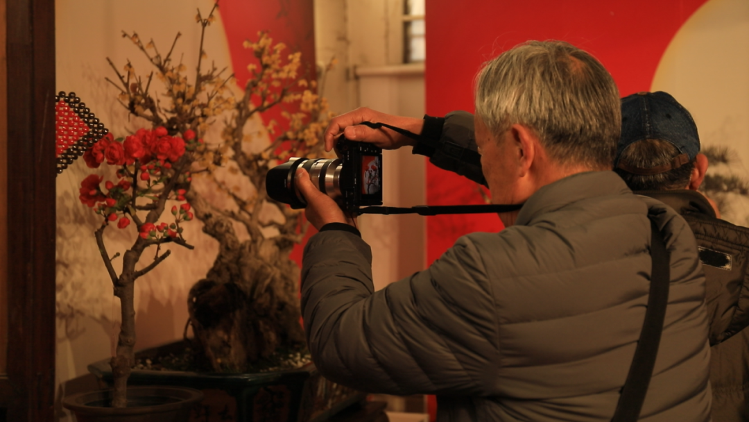 展览现场,老摄影爱好者黄少勇端着相机穿梭于盆景之间,不时蹲身、仰拍,神情专注。他已是畅观堂花展的“老熟人”了。“今天我参观了两梅展,还有兰花、菊花,多花展,感到很高兴。”黄少勇放下手机,感慨道:“每年我都来,今年感觉尤其不一样。摆放花的时候拉开了距离,布置了背景,让这些梅花、蜡梅和菊花的‘美’都得到了提升。我追着花拍了好几年,自己进步了,颐和园的工作人员也进步了。养花的师傅们付出了巨大劳动,从花的状态就能看出来。他们的劳动是看不见的,但这个花展是看得到的。春节到了,全国人民欢庆马年,祝颐和园马到成功,也祝大家马年吉祥。”