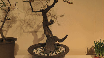 步入畅观堂主展厅,一盆盆梅花、蜡梅古桩盆景错落有致,疏影横斜间暗香盈袖。独干式挺拔俊逸,临水式飘逸欲倾,斜干式险中求韵,组合式层叠成景——六大盆景形制在宫廷建筑光影间次第铺陈,尽显园林盆栽技艺的匠心传承。