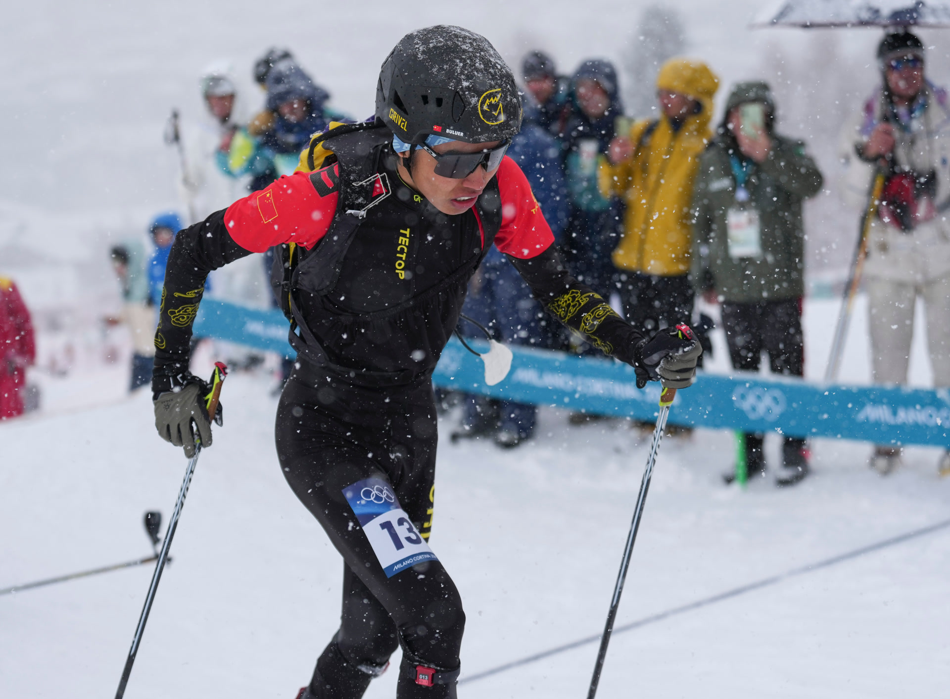 19日早上起来,布鲁尔发现下雪了。来自新疆禾木的布鲁尔喜欢下雪,那里是中国滑雪登山的圣地。“看到下雪就很兴奋,想去滑、去玩。”在阿尔卑斯山区小城博尔米奥的大雪中,布鲁尔和队友次旦玉珍亮相冬奥会滑雪登山赛场,在这个冬奥会新增大项中,以拼搏姿态面对欧美劲敌。