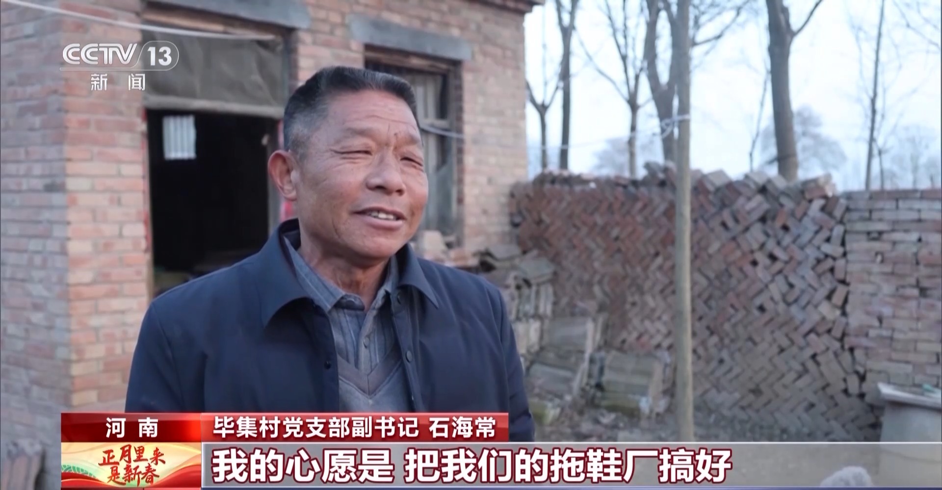 毕集村党支部副书记 石海常:作为一个党员,有危险的时候咱不去谁去,只有咱第一个先上。我的心愿就是把我们的拖鞋厂搞好,给农民创收,这就是我们的马上有福。