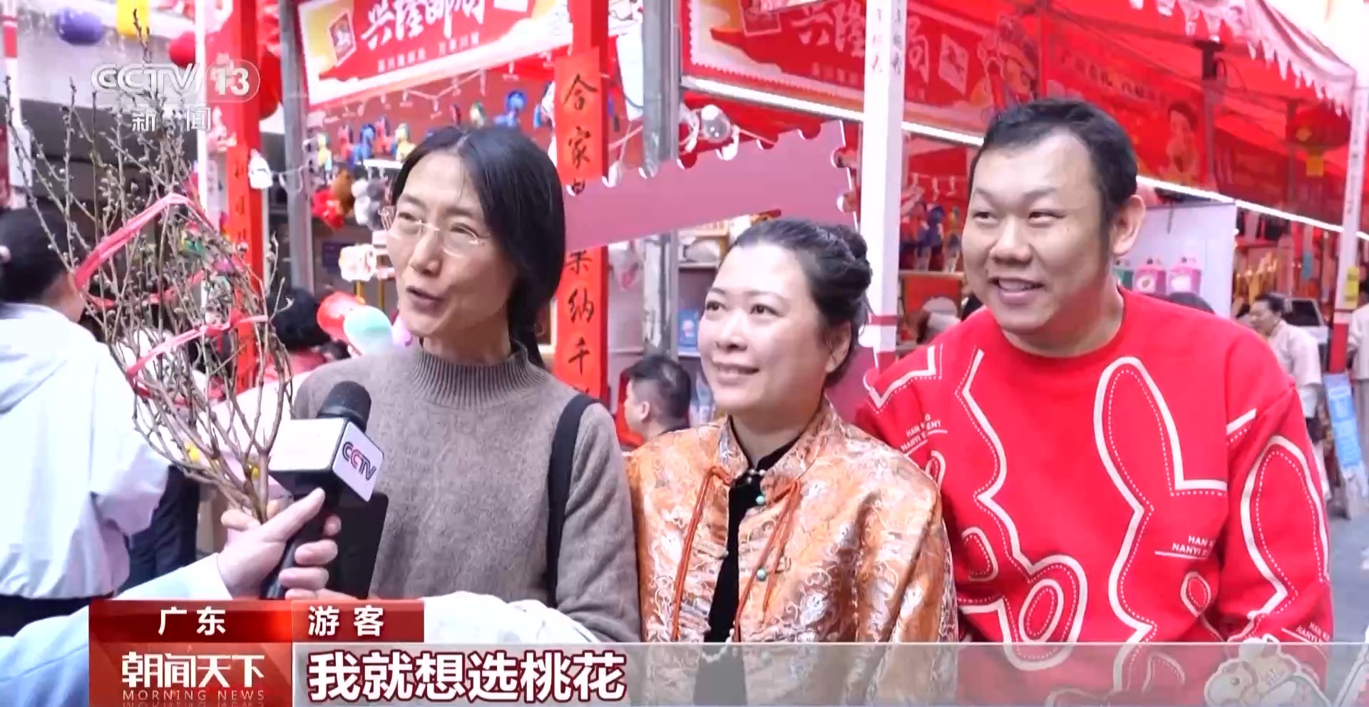 游客:来越秀花市,我就想选桃花,我买了桃花,然后也想看一下水仙花,还有金橘。