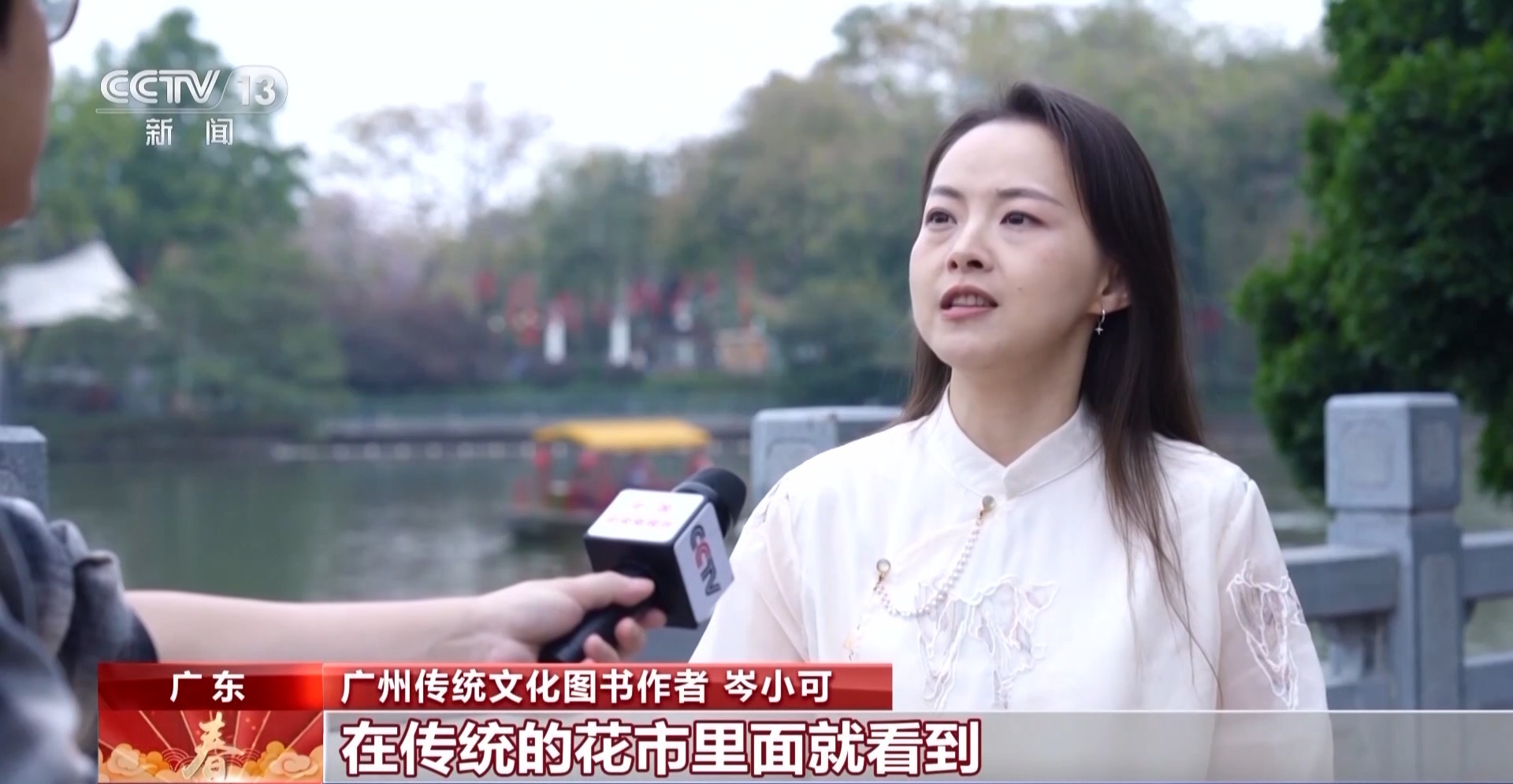 广州传统文化图书作者 岑小可:在传统的花市里面就看到,爸爸抱着小孩或者背着小孩,小孩手上又拿着一些银柳、剑兰这样的画面。