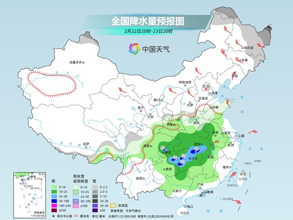 此次过程主要影响时段为23日,从降水相态来看,以降雨为主,贵州到江南中西部降水强、伴有强对流,恰逢春运返程高峰,对交通出行影响较大。