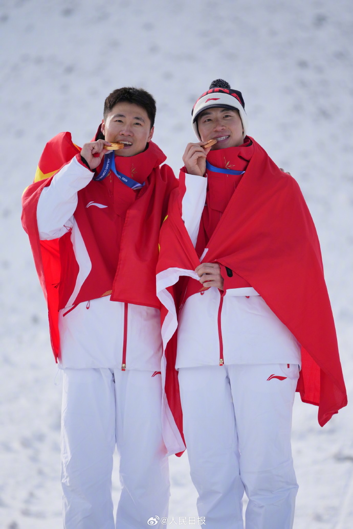 一金一铜,王心迪、李天马身披国旗登上领奖台。