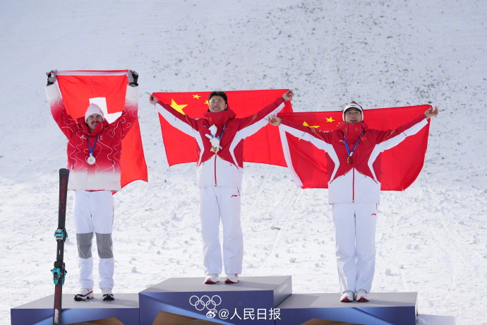为你们骄傲!领奖台上两面中国国旗
