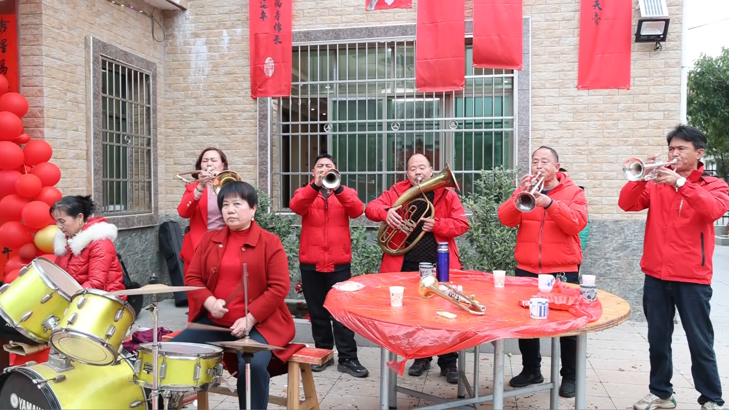大年初四,趁着走亲访友的间隙,肖永高又把小号、架子鼓一件件擦拭干净,为明天晚上的演出做准备。农村喜宴都集中在这几天,乐队即将迎来最繁忙的时间段,他抚着那些乐器,语气里满是骄傲:“演出从正月初五排到了正月初十,庄稼人的日子有奔头,音乐也越奏越红火!”