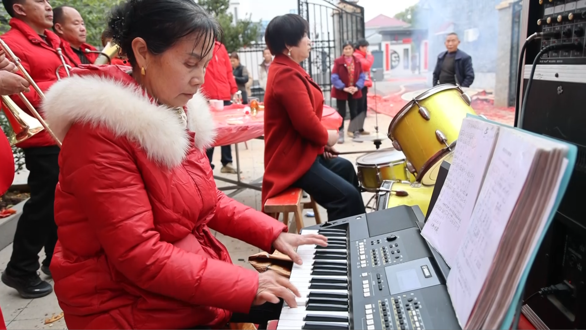 大家底子参差不齐,有的甚至连音符都不认识,却有着同样的热情。成员肖小兰文化程度不高,把乐谱上的音符换成汉字注音,抄在小本子上反复背诵;成员许雪妹以前连乐器都没碰过,加入乐队后跟着肖永高学架子鼓,拿着鼓槌从模仿开始学习;乡村医生胡新光,白天坐诊治病,夜晚趁着空闲练习乐器。