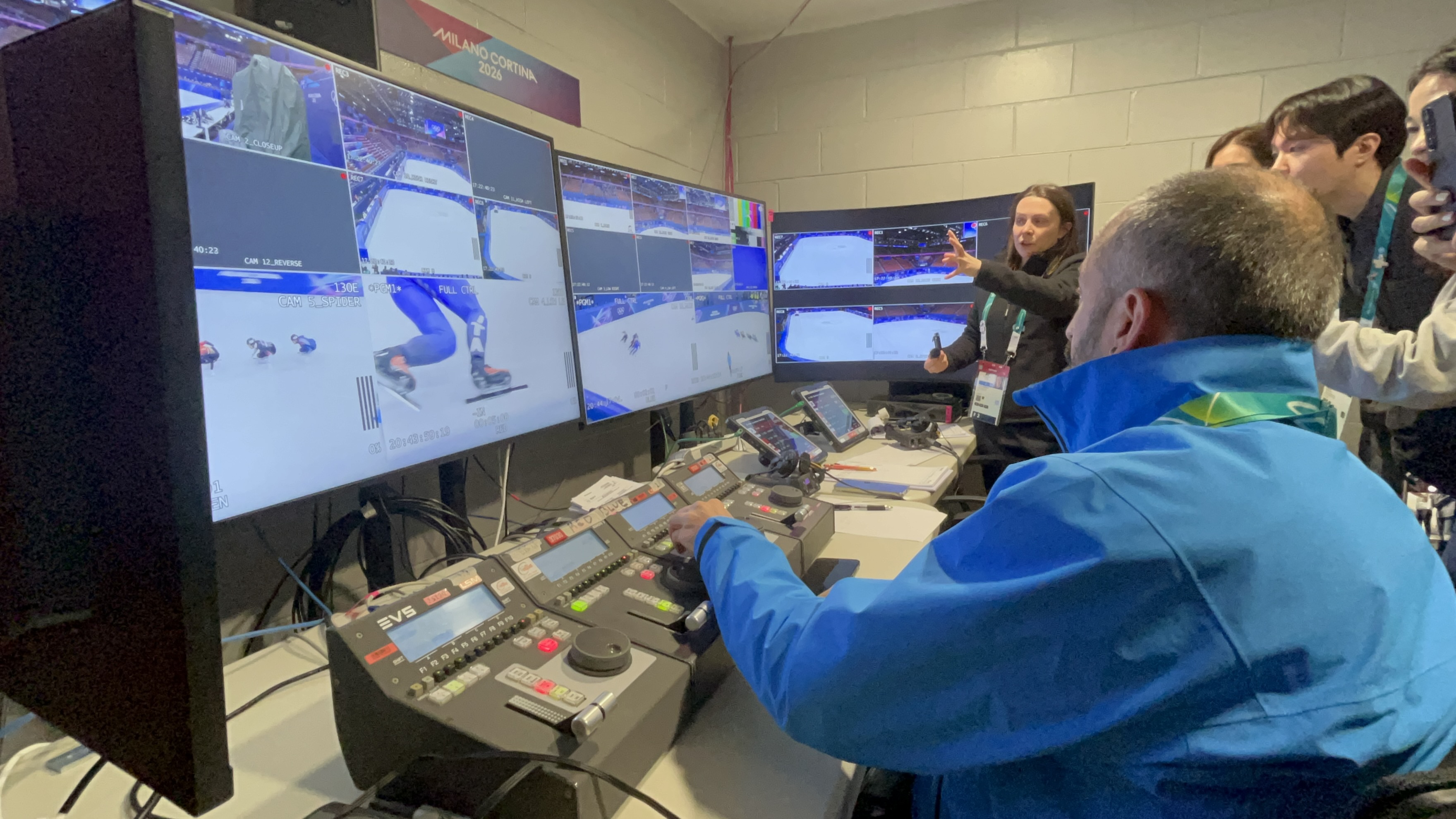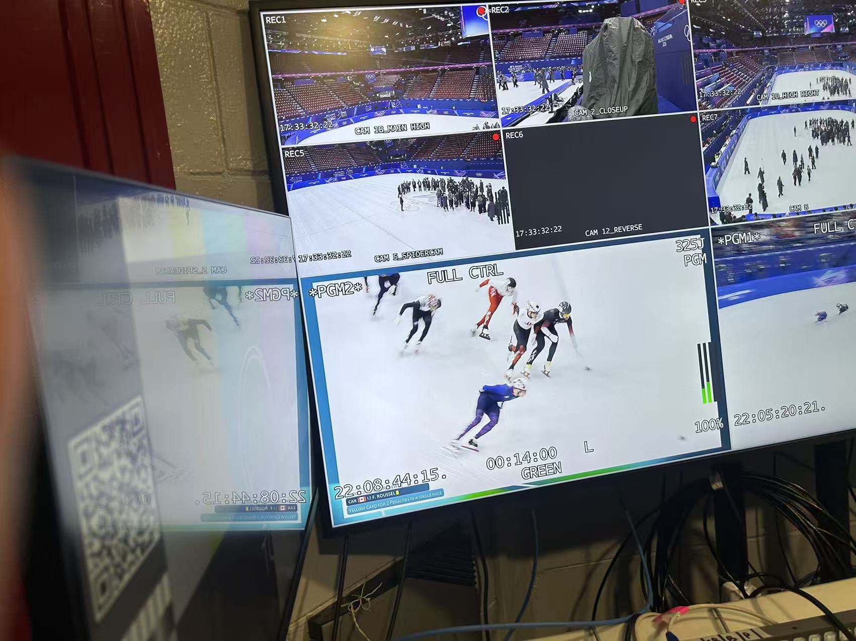 在米兰冬奥会短道速滑冰场一侧,有一个被称作“视频裁判室”的小房间。据视频裁判萨拉·亨德森介绍,比赛中一旦出现异常——如选手接触摔倒、速度骤降,导致名次变化——冰面上的裁判或视频裁判室成员会发出“标记”指令。视频裁判室与主裁判之间通过无线电实时沟通。通常情况下,视频裁判会精选一至三个关键角度,清晰还原事件经过,供主裁判参考。