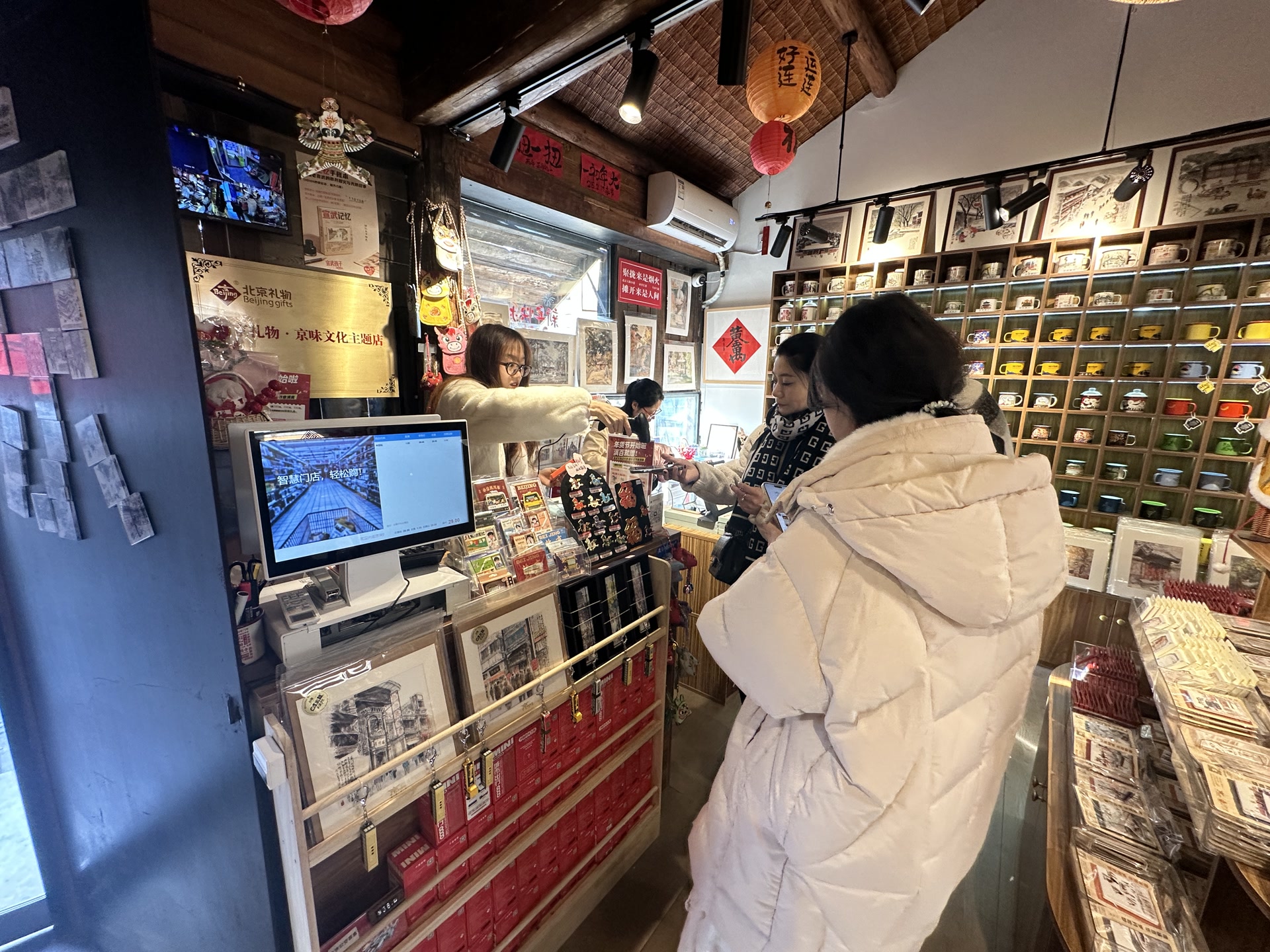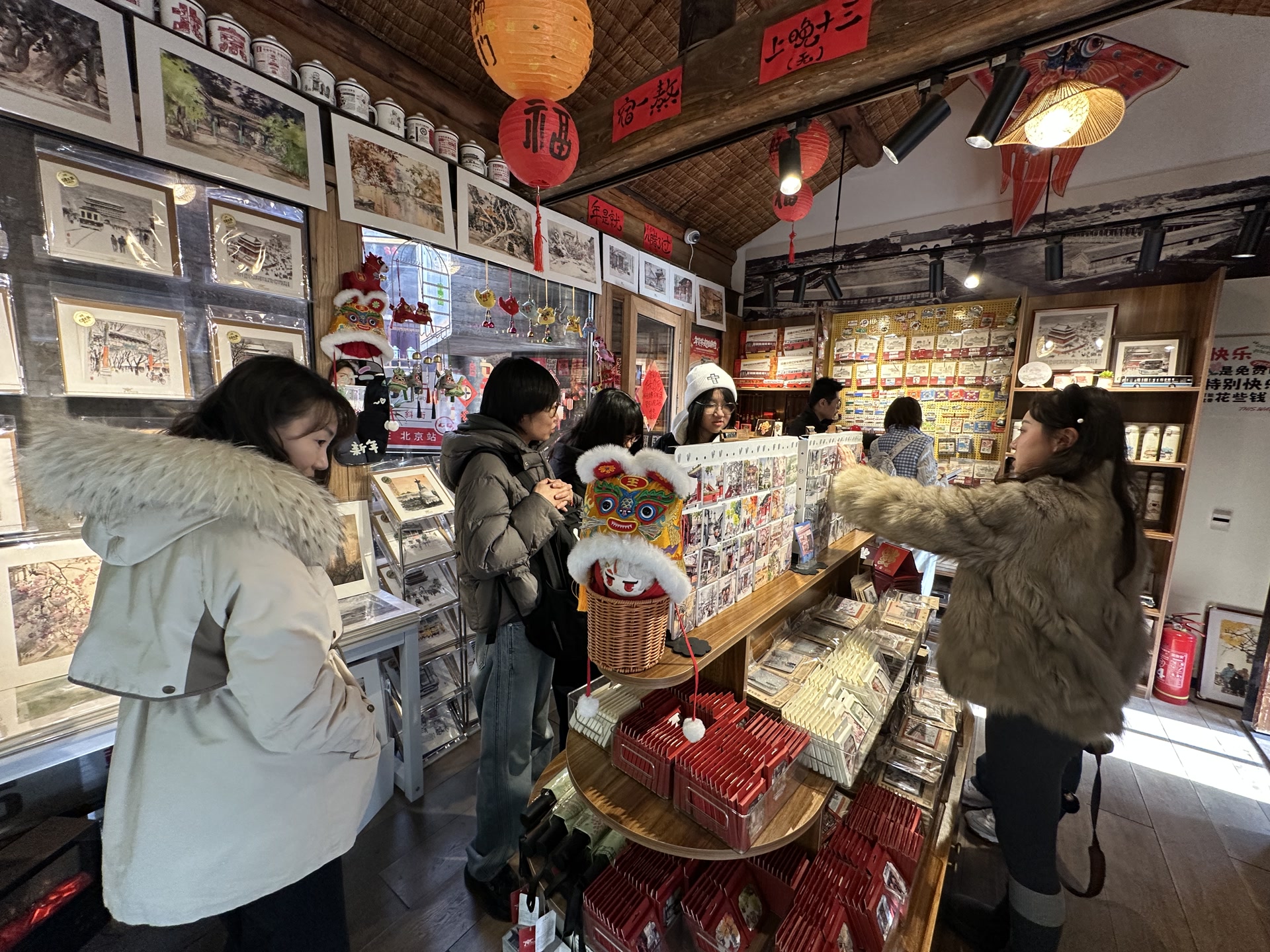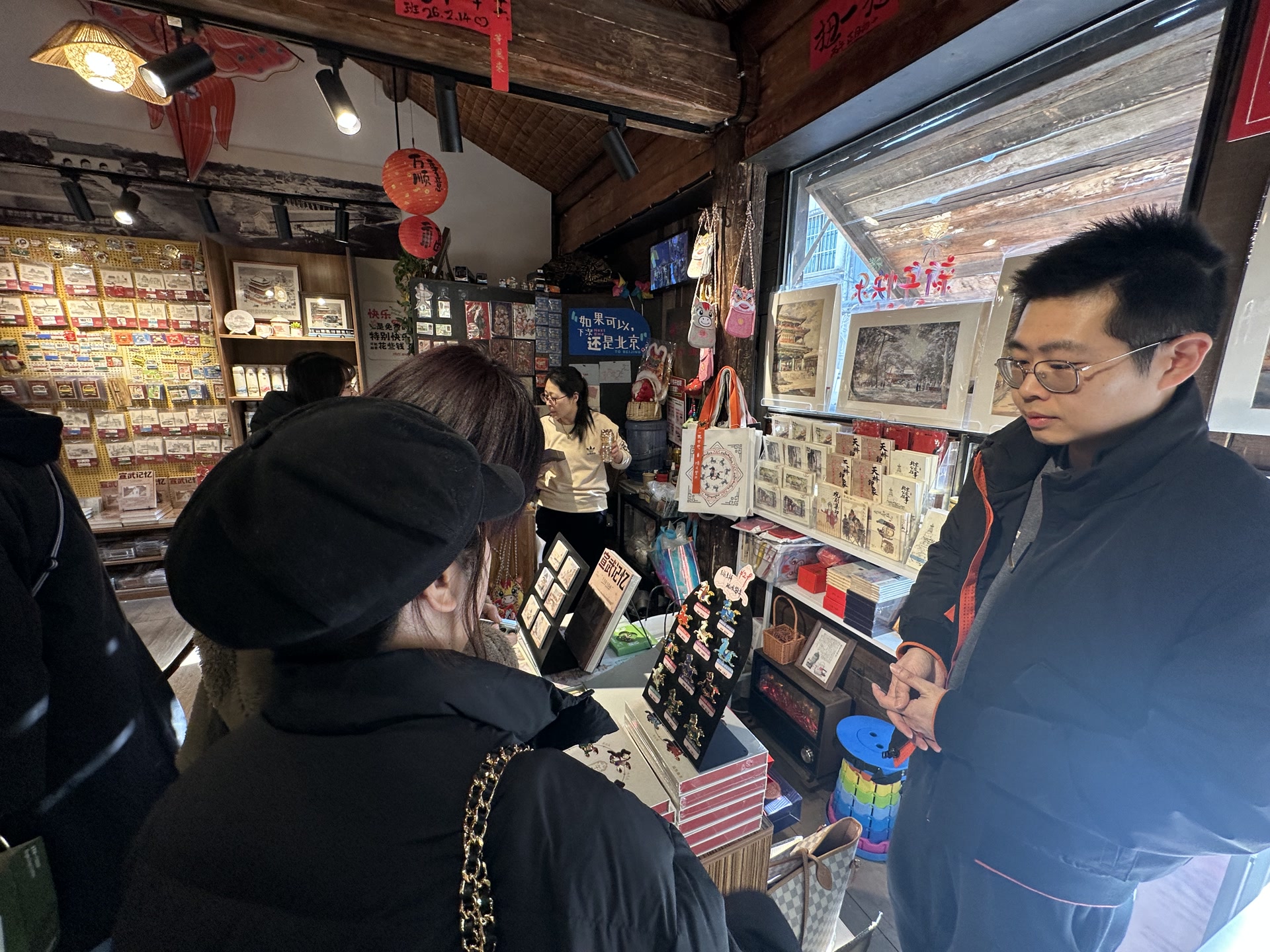 今年是这家文创店正式开店后迎来的第一个春节,店里早已为春节客流做足了准备。“年前一周客流量就明显多了,不少顾客专门来挑京味文创,当作春节伴手礼带回家。”罗皓介绍,整个春节假期小店不打烊,为保障货品供应,热门文创提前一周就备足了库存,店内还加派人手,每天至少3人驻店,营业时间延长至晚上9时,方便夜游胡同的游客也能选购心仪的京味礼物。