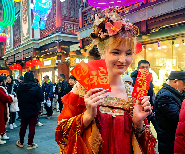 今年春节,各大城市的外国游客“浓度”显著上升。从商业大街到地铁车厢,从知名景区到古村街巷,不同肤色、不同国度的人们追寻年味而来。