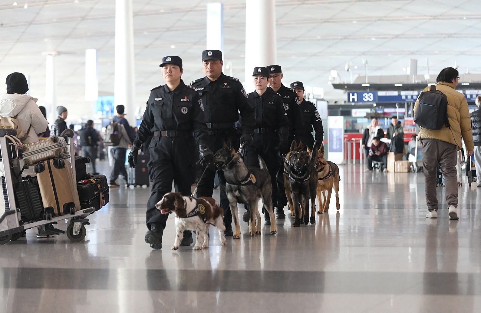 航站楼内,春运人潮依旧涌动,马振鑫与“七夕”的身影不时融入人群,用共同的坚守,为往来旅客做好安全保障。