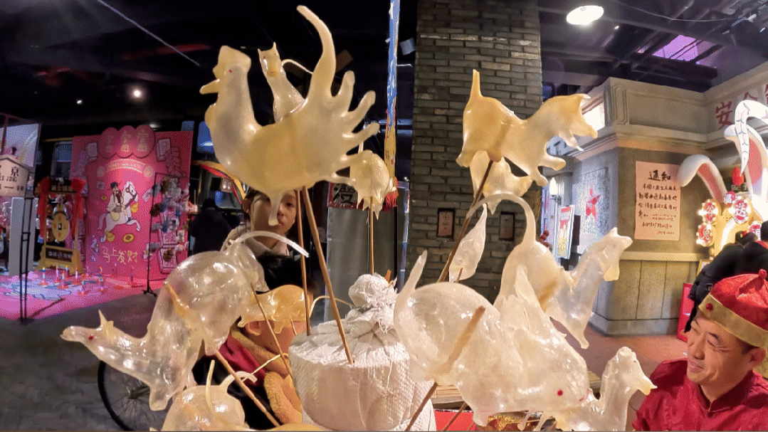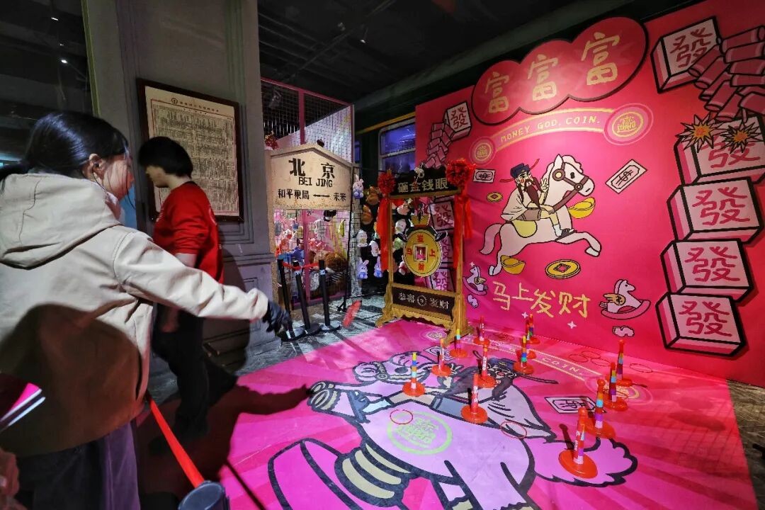 和平菓局相关负责人告诉记者,“今年最大的不同,就是我们把‘马上发财’的新春寓意做成了全场景沉浸式体验,全天安排3至5组特色NPC巡场互动,大家可以猜京味歇后语、答题赢好运,唠嗑间就能解锁隐藏福利,春节期间新增舞狮、杂技等传统民俗互动环节,让大家在逛庙会的同时,感受国粹与非遗的魅力。”
