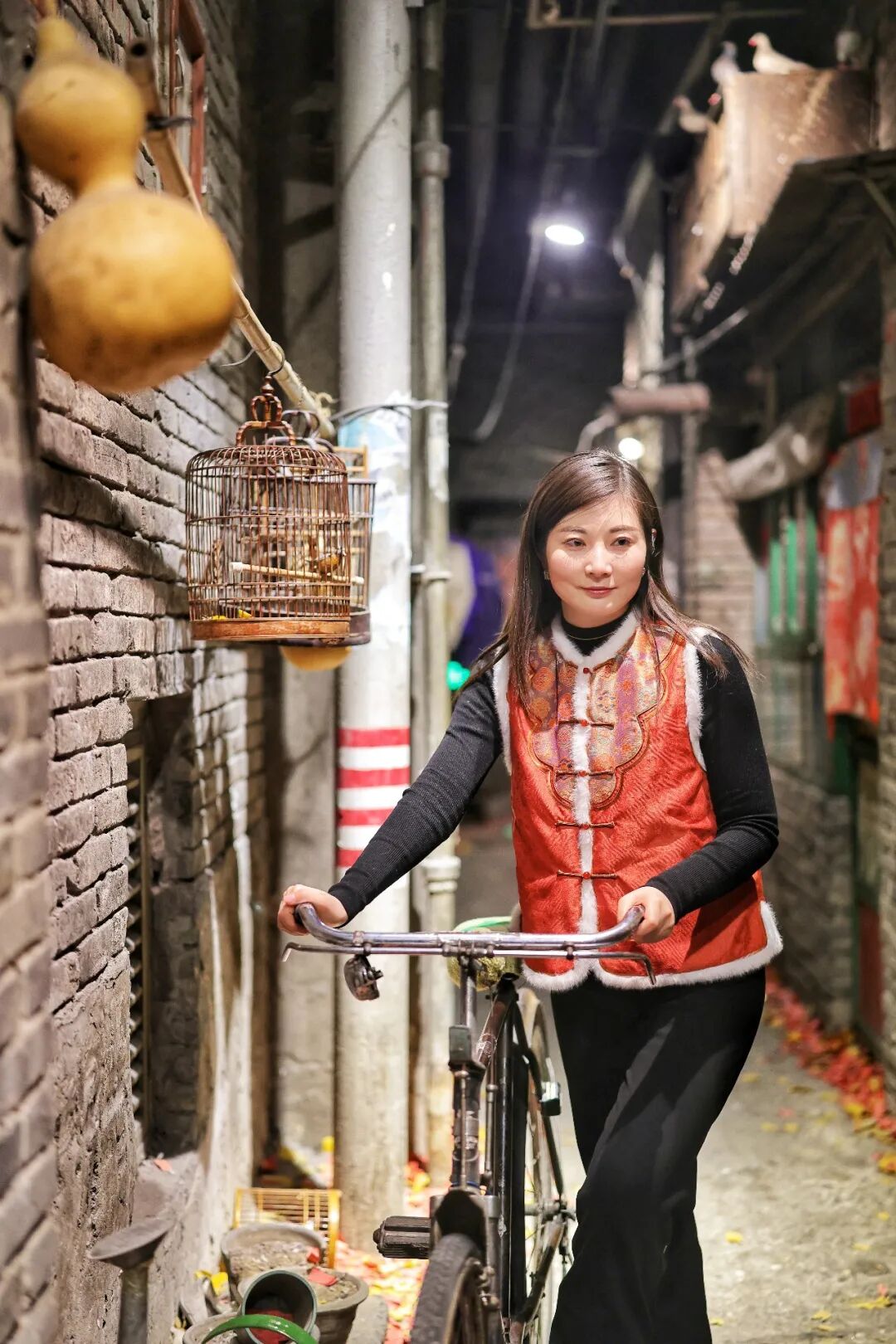 不仅如此,和平菓局在环境布置上也颇费心思,漫步在灰砖黛瓦的胡同巷陌间,大红灯笼高挂檐角,红彤彤的春联、“福”字贴满门楣,烫金的吉祥话在光影里漾着年味;墙角巷边还摆上了寓意吉祥的蜡梅、年桔,搭配着复古的铁皮灯、老北京招牌,一步一景皆是老北京胡同过年的鲜活模样。