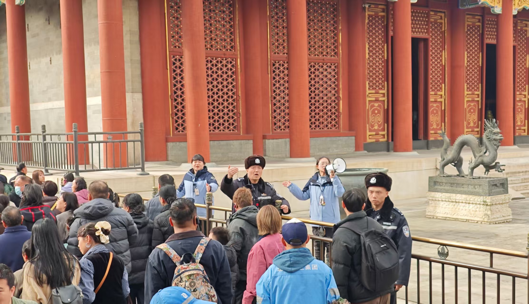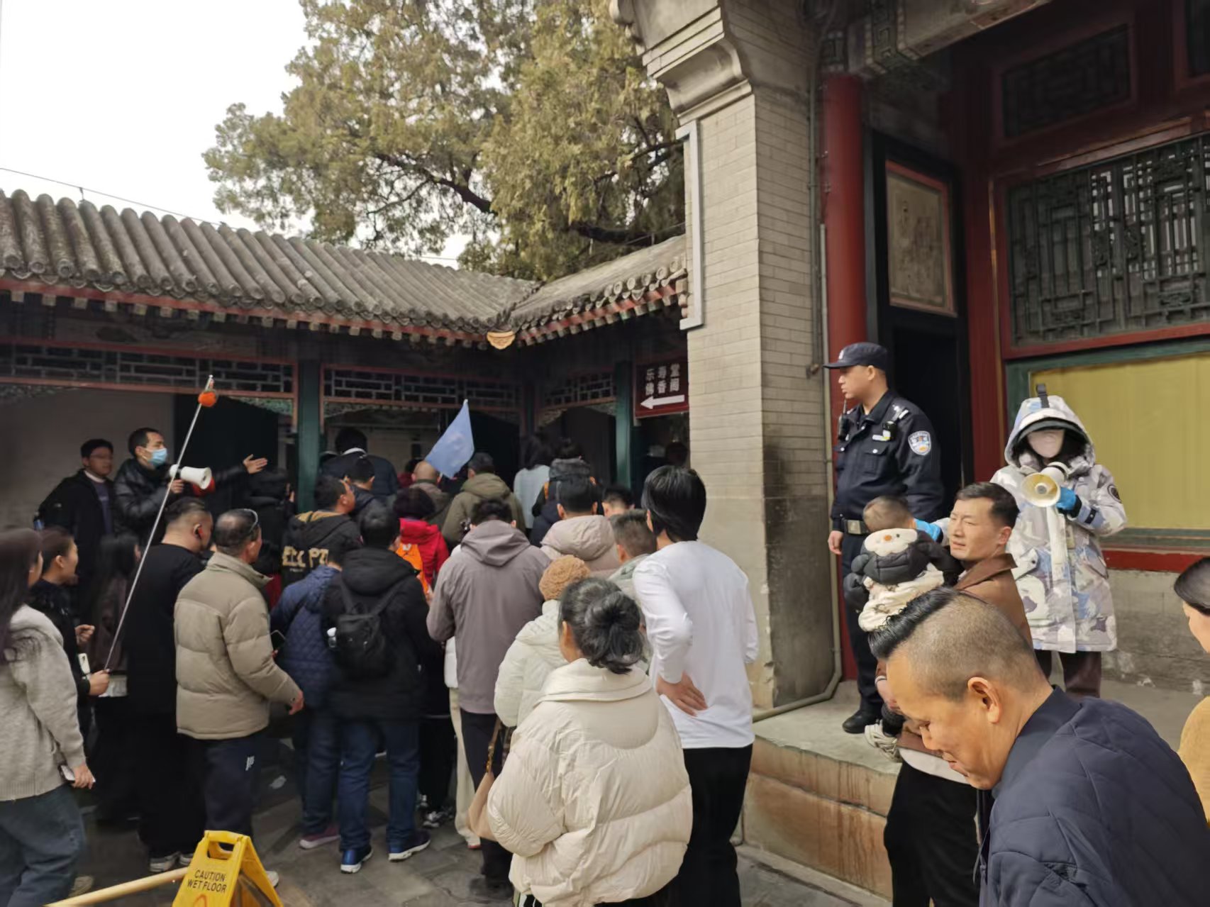 上午9时,东宫门外广场人头攒动。在熙攘的人群中,多股力量交织成一张无形的安全网。