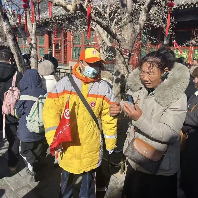 “大家慢一点,不要急,注意脚下台阶!”在游人如织的长廊景区,几位身着亮黄色外套的首都公共文明引导员格外显眼。他们一边挥舞着小旗引导客流单线循环,一边用亲切的“京腔”提醒游客注意脚下。