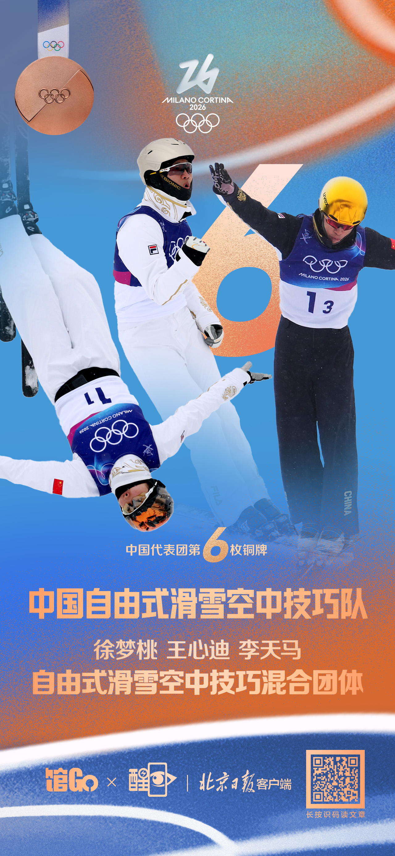 北京时间2月21日晚,米兰-科尔蒂纳冬奥会自由式滑雪空中技巧混合团体比赛中,由徐梦桃、王心迪、李天马组成的中国队取得季军。美国队蝉联了该项目的冠军,瑞士队取得亚军。这是中国代表团在本届冬奥会收获的第13枚奖牌,在自由式滑雪空中技巧项目上,中国队取得了2金3铜。