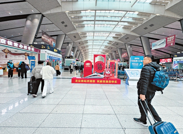 北京南站,马年祝福元素摆在进站显眼位置,增添了浓浓的春节气氛。本报记者 丰家卫摄