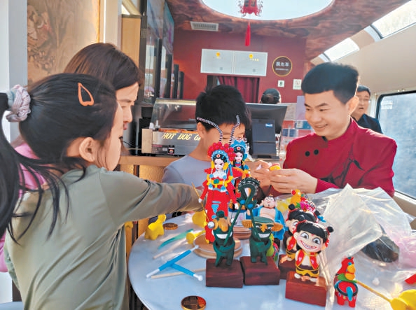 “星光·燕赵号”承德旅游专列上,旅客正在体验捏面人活动。河北日报记者 方素菊摄