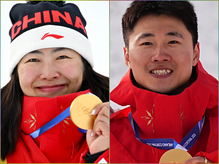 在个人比赛中,“桃心夫妇”徐梦桃、王心迪分别摘得女子、男子冠军,成为历史上首对在同一届冬奥会上分别摘得同一项目男、女金牌的夫妻,创造了米兰冬奥会的一段佳话。