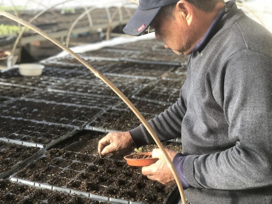 顺沿特菜基地工人正在播种春苗。