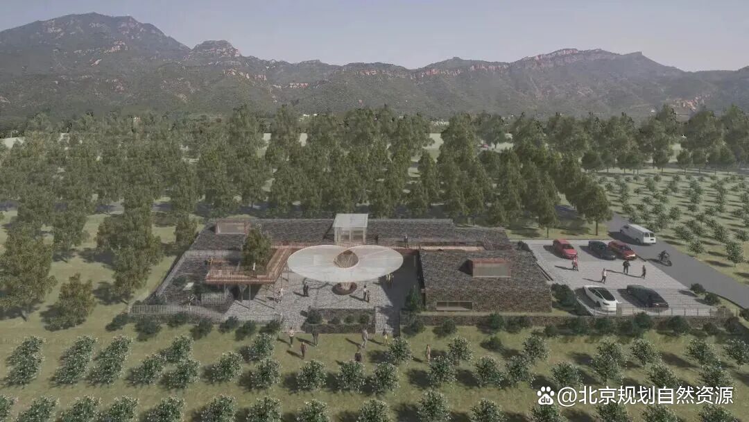该项目点状配套设施建筑面积约490平方米,从场地整理、本地选材到施工建造、运营维护,全过程践行低碳环保要求。项目审查秉持全生命周期绿色建筑理念,对外立面要求采用本地天然毛石装饰,砖院加装帆布棚降低体感温度,合理测算窗墙比减少建筑能耗;建筑设计注重功能复合,实现建筑面积的高效利用;同时,屋顶兼具观景游览与无人机植保功能,实现采摘、加工、研学、科普等多功能复合,打造与海棠园景致相融的“小而精、小而美”精品建筑。