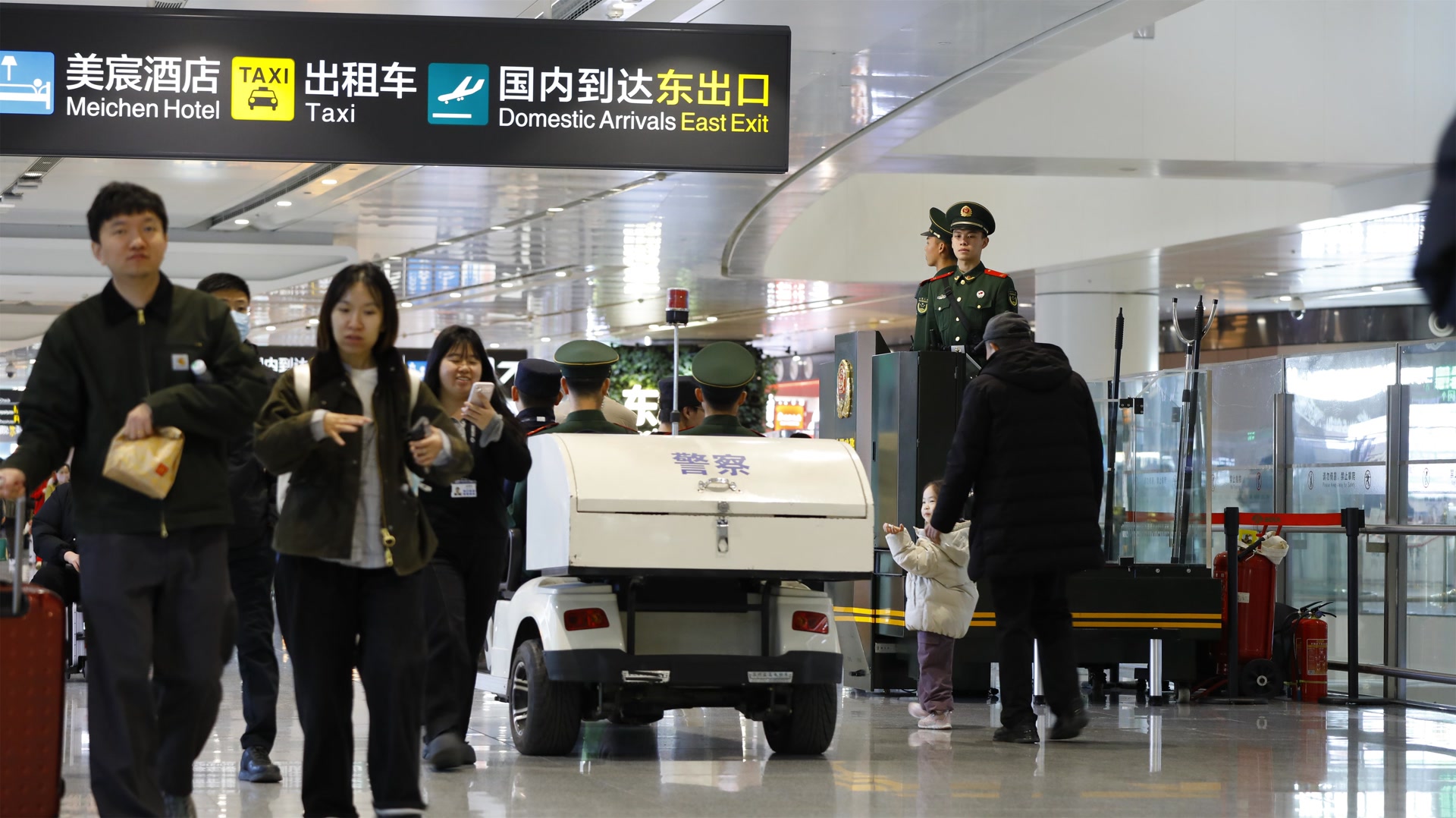 从航站楼到达层到地铁换乘区,这段百余米的通道,是旅客离开机场的必经之路,也是武警官兵用脚步反复丈量的责任区。他们不仅要确保秩序井然,更要让每一位旅客在踏入返程路的第一时间,感受到安全与温暖。