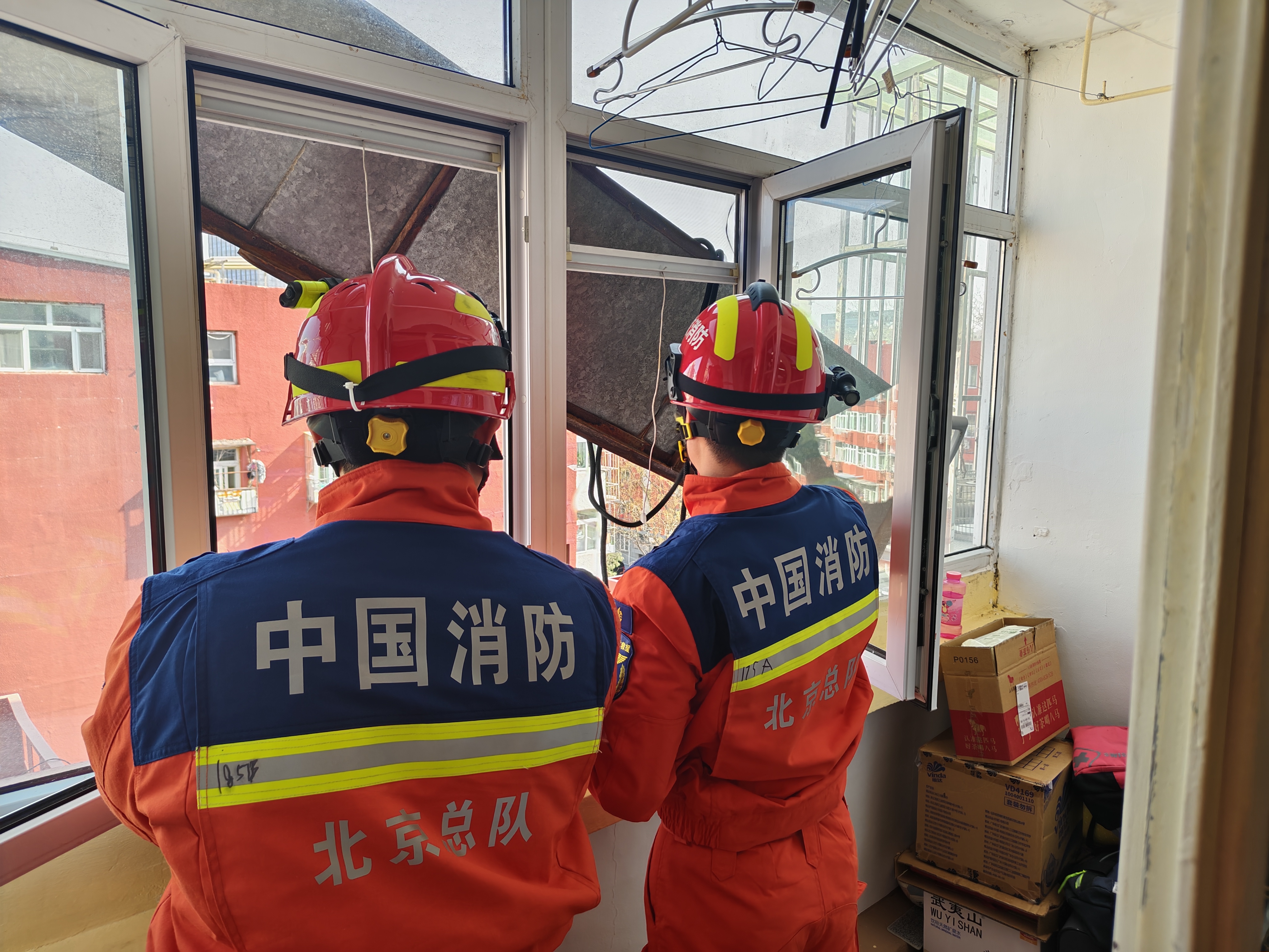 2月22日中午,因受大风天气影响,东城区和平里街道一居民小区6层阳台外铁皮遮阳棚出现脱落情况,悬于高空,随时有坠落风险,严重威胁楼下居民安全。消防员接警后紧急处置,成功消除了这一高空坠物隐患。