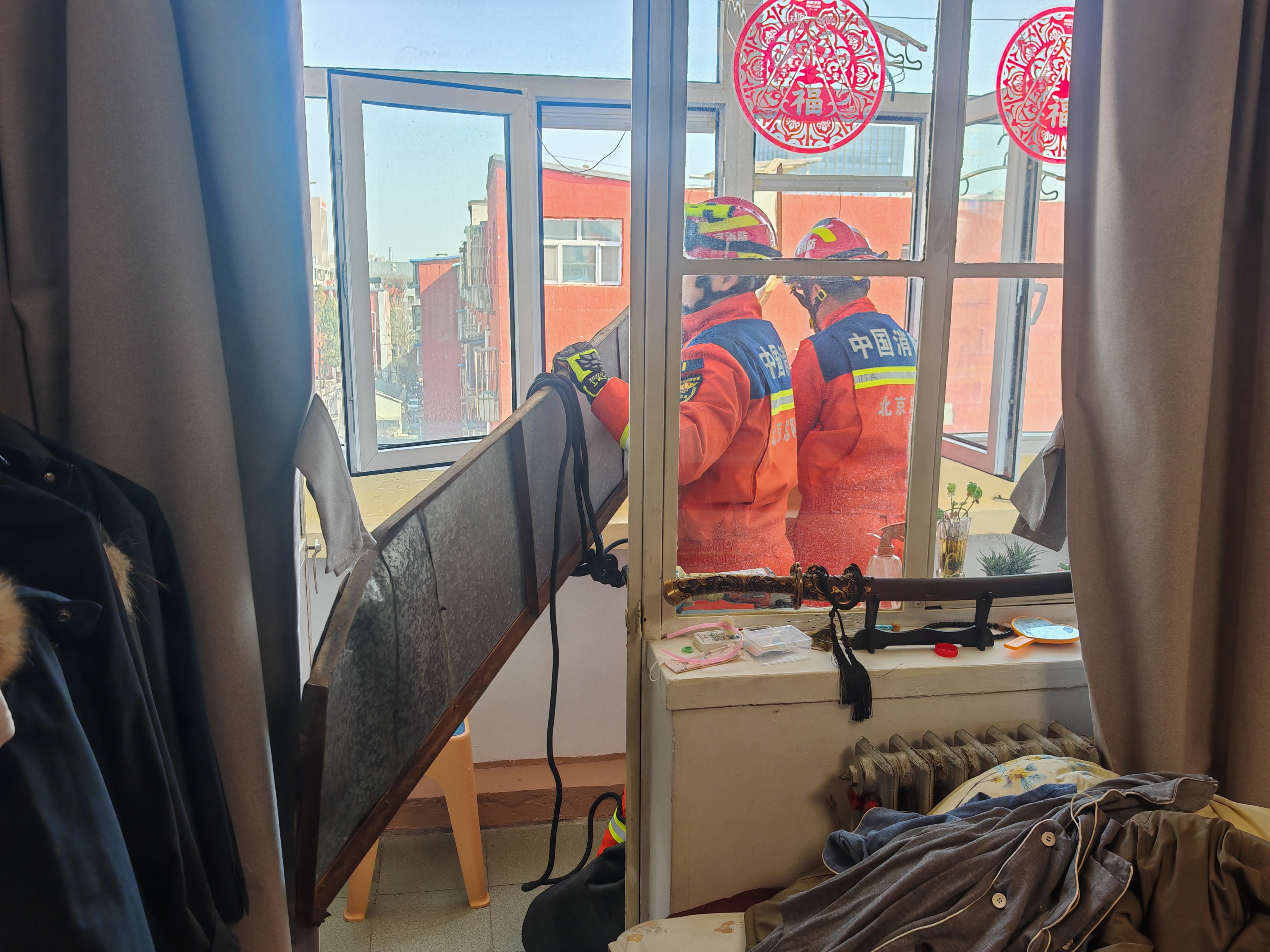 22日中午12时许,东城区安定门外消防救援站接警后迅速派出队员赶赴现场。到场后,消防员第一时间在楼下划定警戒区域,疏散周边居民,提醒过往行人绕行避让,做好现场安全防护。