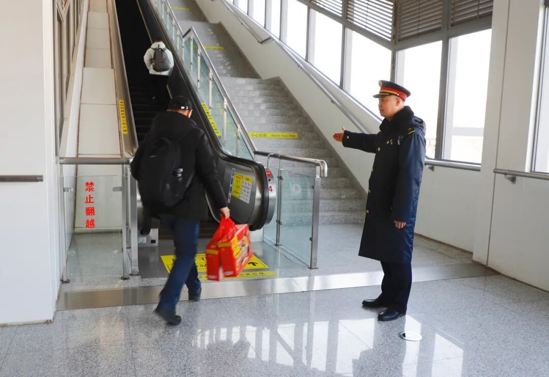 在顺义西站,还有许多在春节期间坚守岗位的一线工作者——维护站内秩序的公安人员,守护环境卫生的保洁员。他们中,有坚守多年的老员工,也有初担重任的新力量。他们以岗为家、以责为伴,用温情守护归途,为这个春节增添了最动人的温暖底色。
