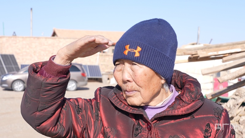79 岁的尼玛老人抬手眺望边境线(央广网发 邬力吉巴托 摄)