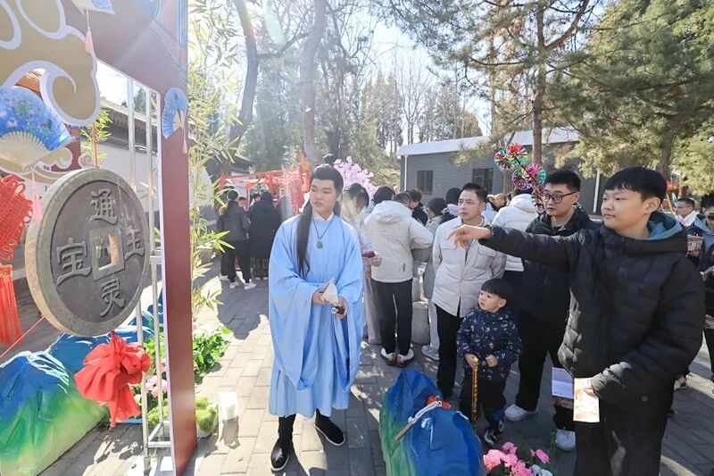 沉浸体验升级,打破庙会以往“观看”为主的模式,推出《我的红楼世界》NPC沉浸互动。游客可化身为“红楼梦中人”,通过完成与“宝玉”“黛玉”“警幻仙子”等NPC的互动任务,获取“贾府银票”,免费畅玩投壶等传统游艺,实现从“游览者”到“参与者”的身份转变。