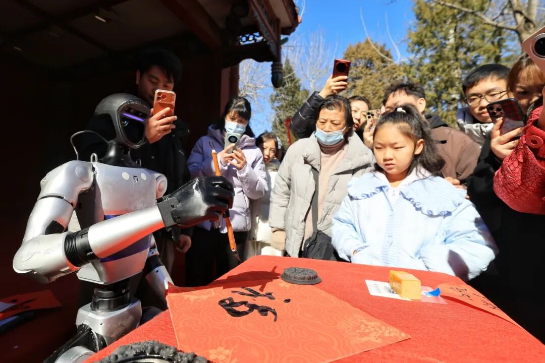 智能应用融合,在非遗市集,游客不仅能体验漆扇、吹糖人等传统手艺,还能看到机器人挥毫写春联、AI中医舌诊等“未来非遗”场景,让古老技艺焕发智能光彩。