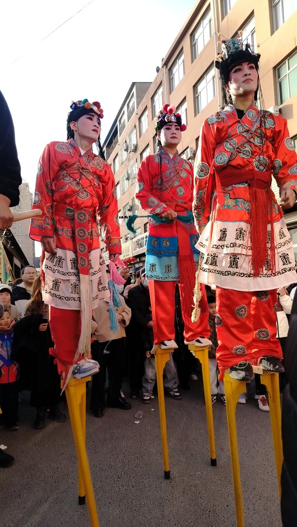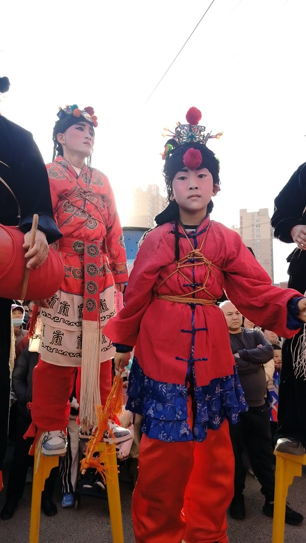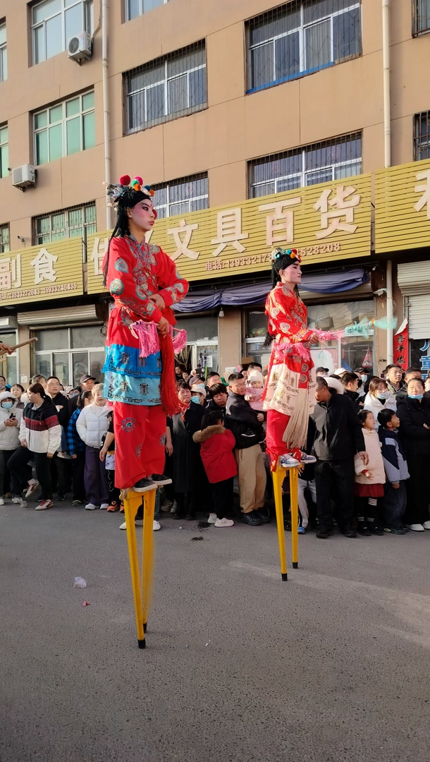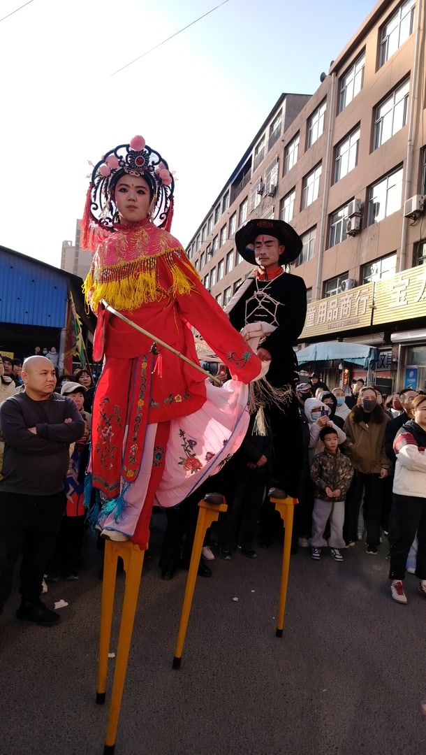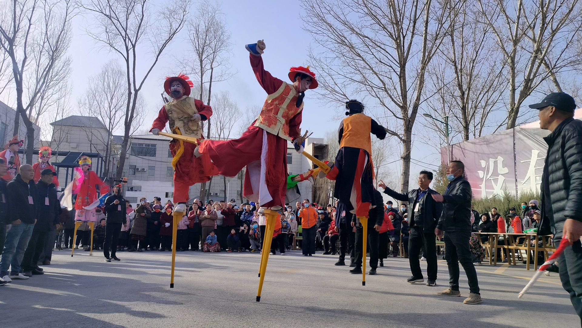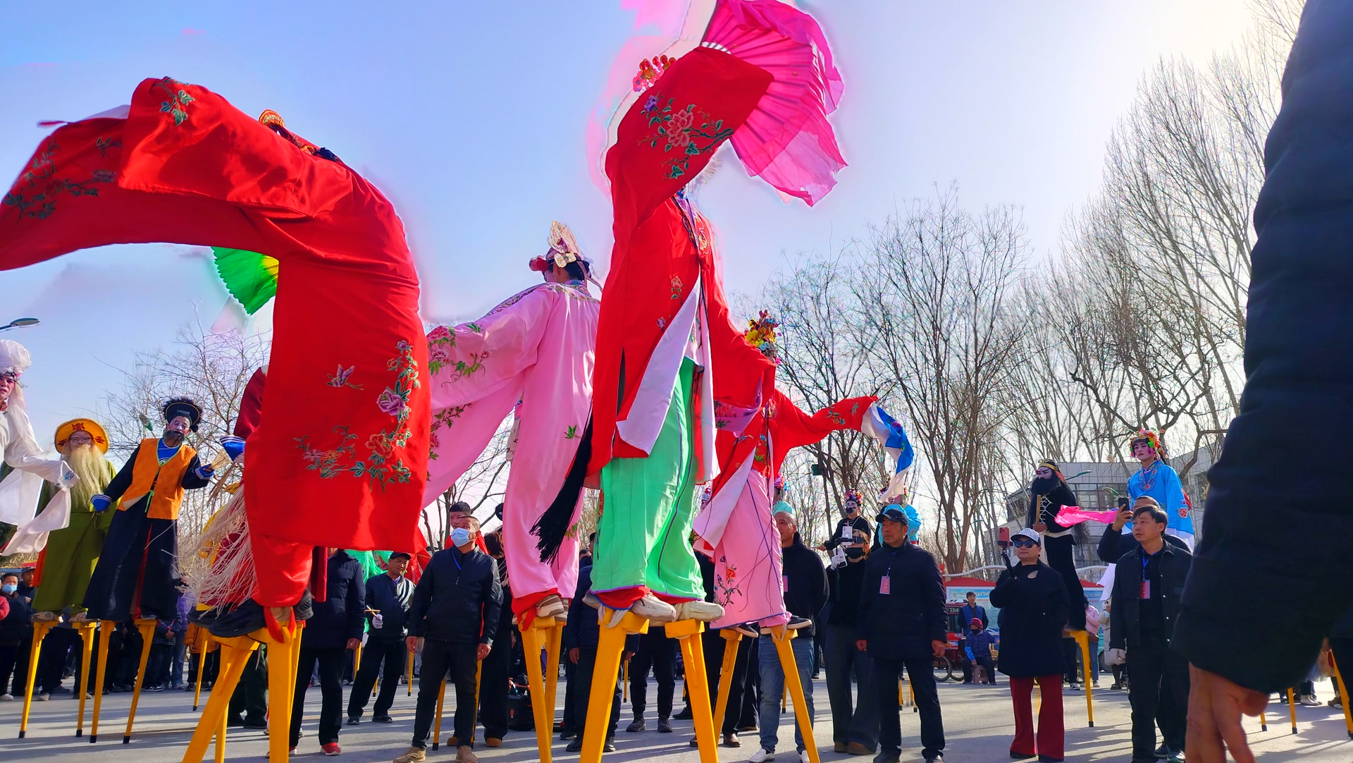 这支队伍里最小的跷手张姓小朋友,仅六岁;队伍中年长的近80岁。在锣鼓喧天的热闹气氛中,高跷玩角儿们施展技艺,各显身手。