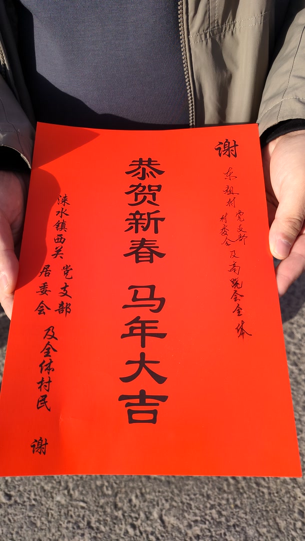 北郭下村演出后,高跷队伍前往西关村,高跷队伍还没来,西关村的人就到村口去接会了。过去高跷会到外村表演要散会帖,会帖用红纸书写。今天西关村迎会的帖子也是用的红纸。