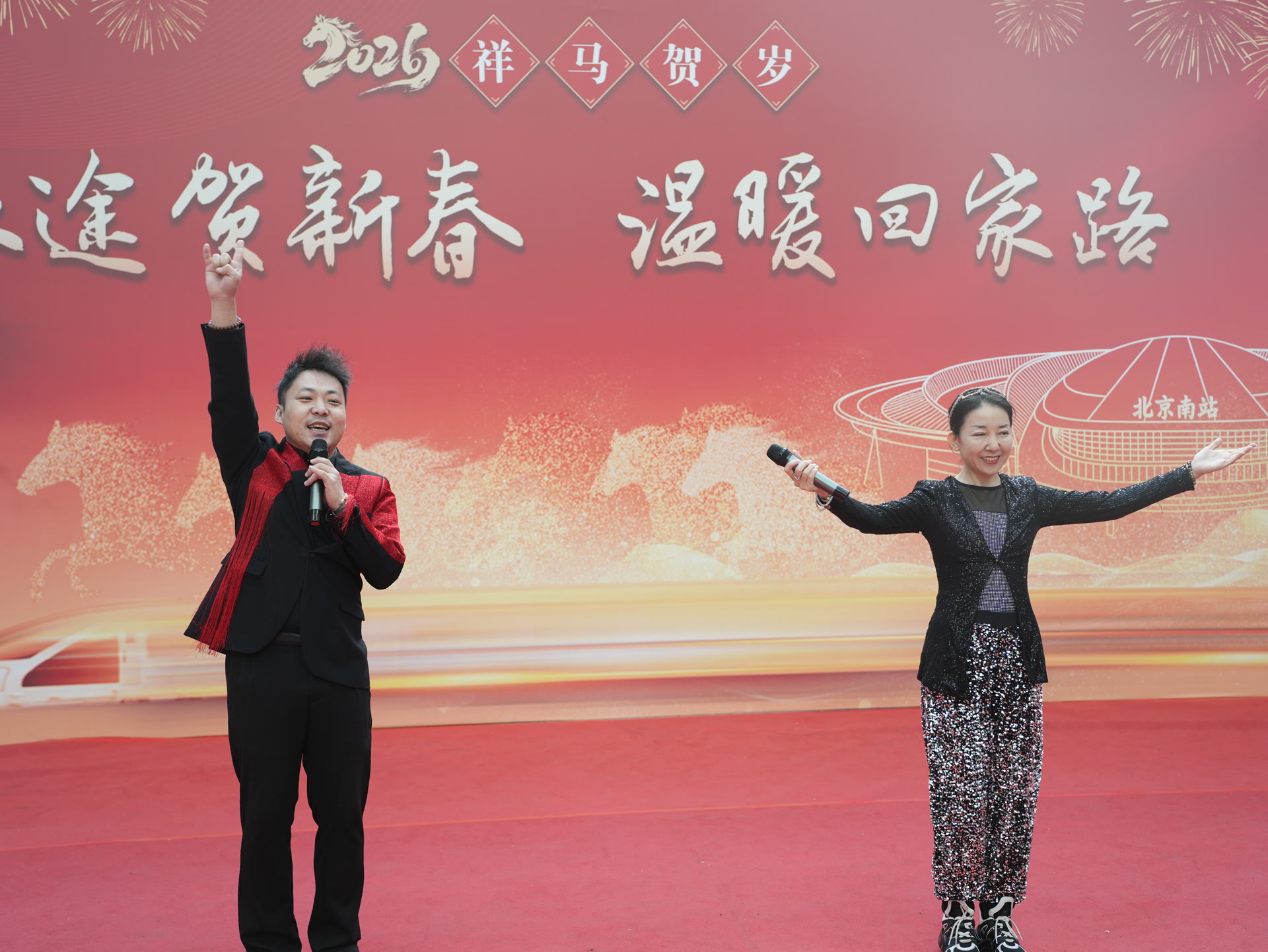 2月22日正值春运返程客流高峰。北京南站二楼候车大厅内,精彩纷呈的主题文化活动让候车旅客不再无聊,为奔波的返程旅途增添一抹温暖亮色。