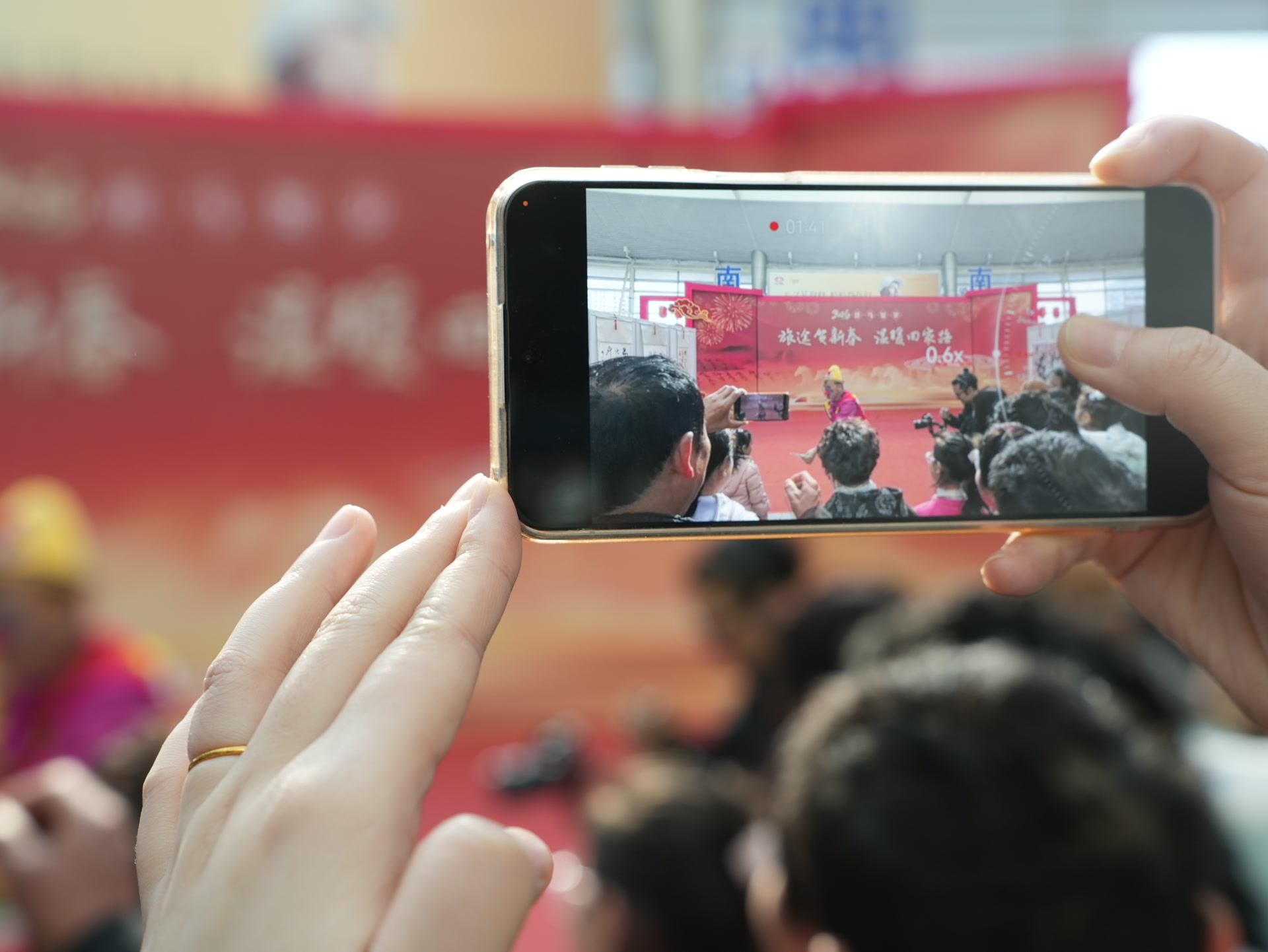 耳熟能详的歌曲《好运来》《欢乐中国年》接连唱响,喜庆欢快的旋律瞬间将现场氛围推向顶点,在场旅客纷纷跟着节奏挥手、打拍,不少人更是自发加入合唱,候车大厅里汇成一片欢乐的“海洋”。