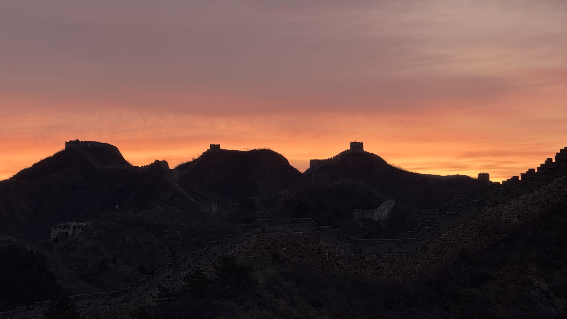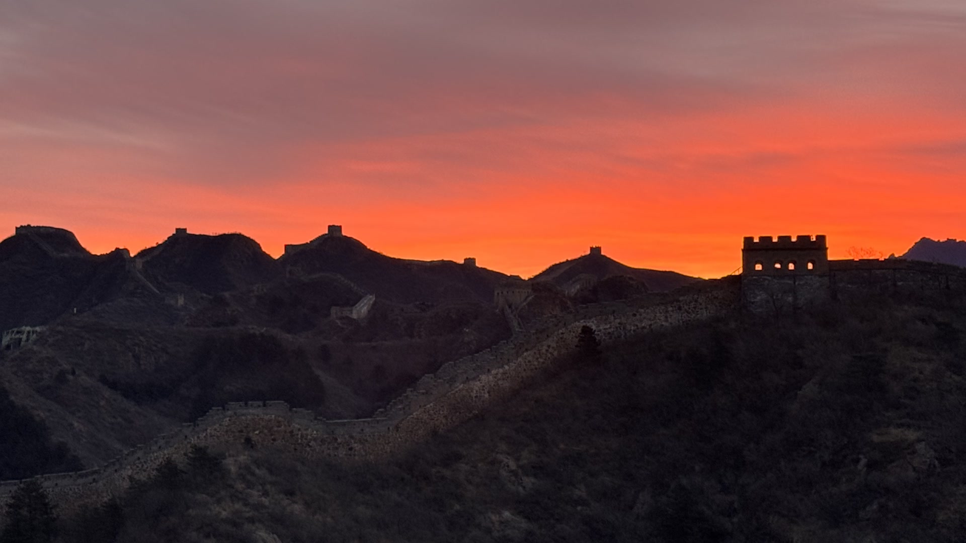 壮美如画!金山岭长城现绚烂火烧云