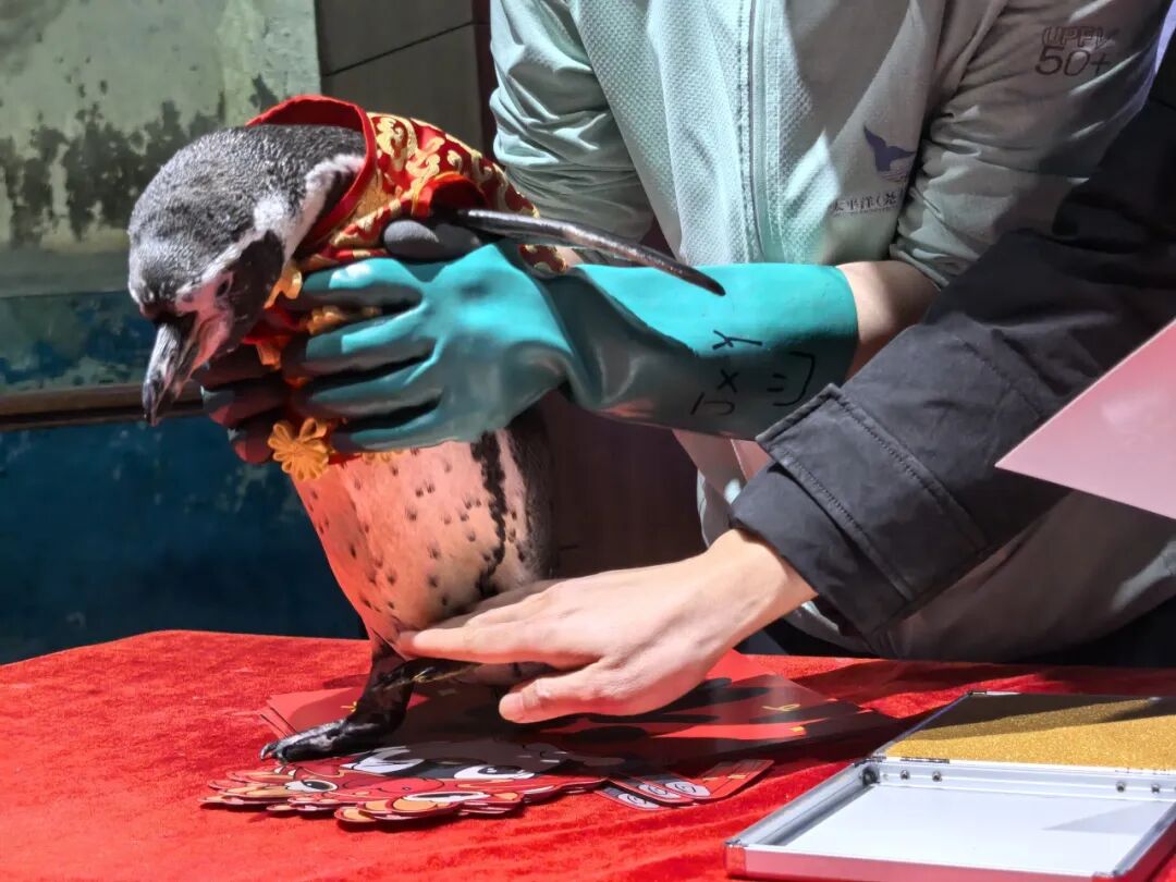 “我们希望打破传统海洋馆的游览模式,将海洋生物的灵动与春节的喜庆氛围深度融合,为不同年龄段的游客打造沉浸式的节日体验。” 太平洋海底世界市场部市场营销经理赵潇莹在接受采访时说道。“春节期间,我们让企鹅在定制福字贴上留下专属‘福印’,每一枚脚印福贴都是独一无二的,既传递了新春祝福,也为游客提供了具有纪念意义的伴手礼。” 赵潇莹表示,为了保证互动体验的质量,企鹅每日仅在10:30、14:30两个时段亮相,活动持续至2月23日,游客需通过官方微信公众号预约领取福贴。