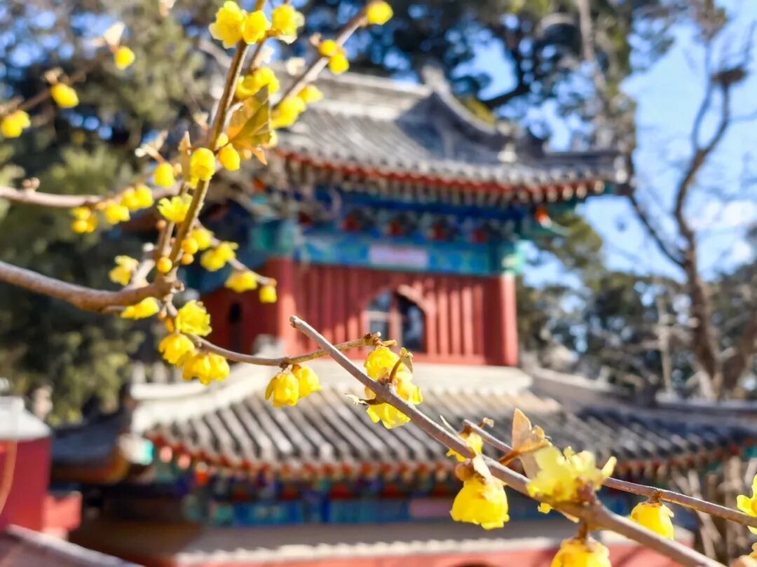 目前梅谷的蜡梅正值盛花期,而碧云寺塔院内的花苞也即将绽放。据公园工作人员介绍,整个蜡梅的花期预计将持续到3月初,大家有充足的时间错峰赏花,不必急于一时。