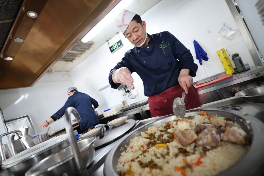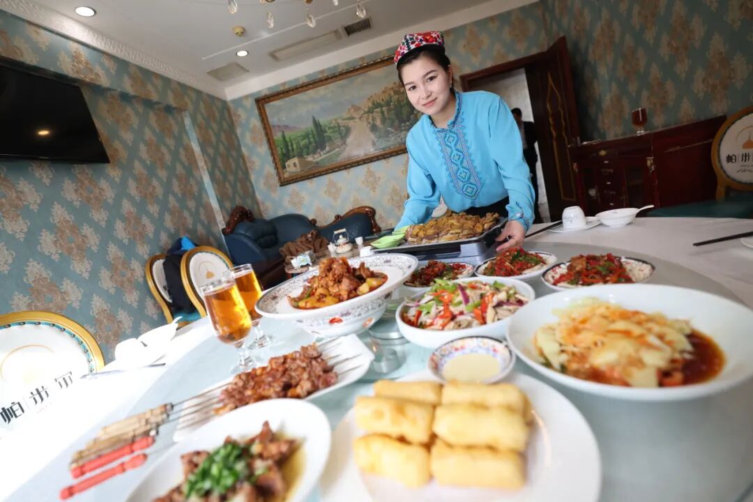 我区区属国企华远集团旗下获得“国家五钻级酒家”称号的帕米尔食府,在新春佳节奉上多道好口彩的吉祥菜,包括“天马炙肉排”“骏马奔腾大盘鸡”“马识途·山河味”。其中既有家宴必点的硬菜,又有外卖窗口售卖的实惠小吃,在春节假期里受到周边百姓和游客的欢迎。“新疆风味地道,国企的食品安全还让人放心。”一名老顾客如是说。