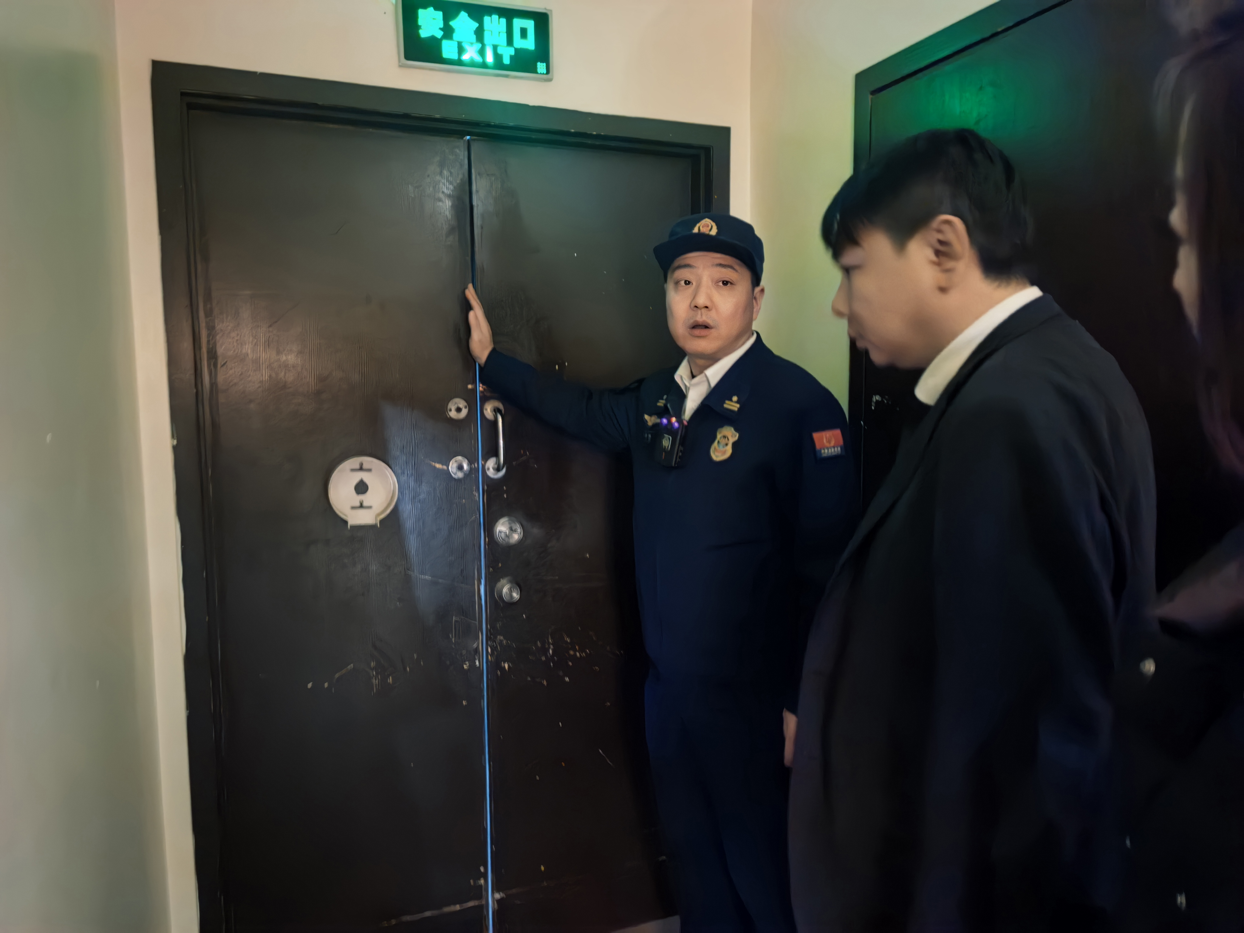 消防监督员随机选取了数条疏散通道查看畅通情况,抽查通向楼梯间及相邻防火分区的防火门,测试其闭门器、顺序器功能是否完好,查看门扇是否破损、缝隙是否超标,并观察常闭式防火门是否处于规定关闭状态。“疏散通道是‘生命通道’,防火门是‘生命之门’……必须时刻保持疏散通道畅通,保持防火门处于规定的关闭状态,绝不能成为摆设。”消防监督员向仓库安全管理负责人提示。